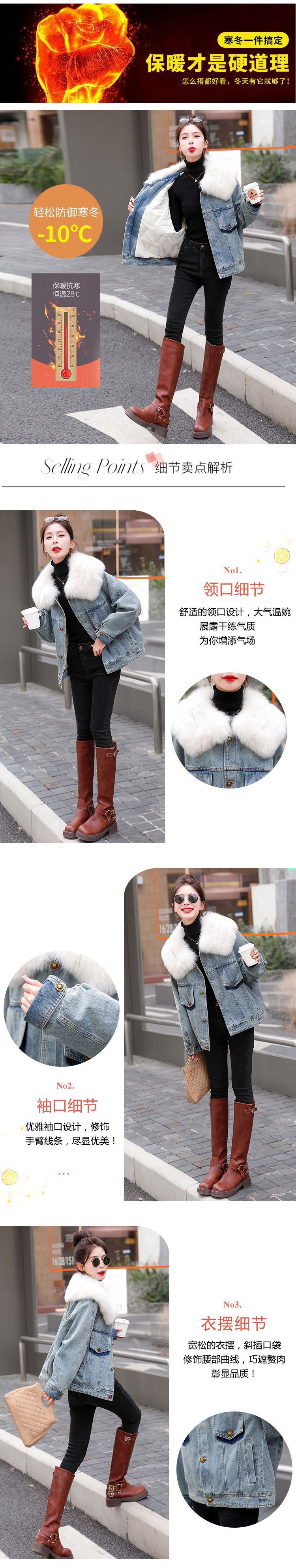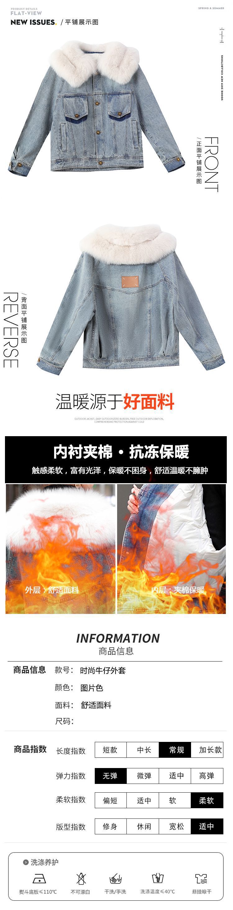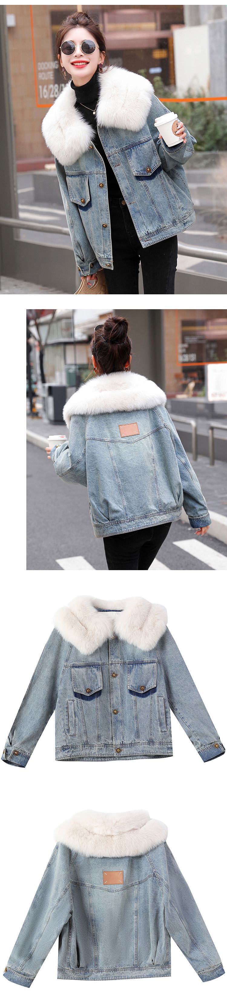 데님 코트 여성의 짧은 기모 두꺼운 대형 고급 모피 칼라면 패딩 코트 2023 겨울 새 모피 파카 옷스토어 가기