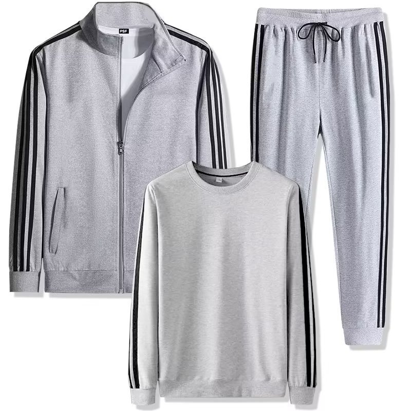 공장 도매 3 피스 남성 스포츠 세트 봄과 가을 달리기 스포츠웨어 3 바 캐주얼 스웨터 코트
