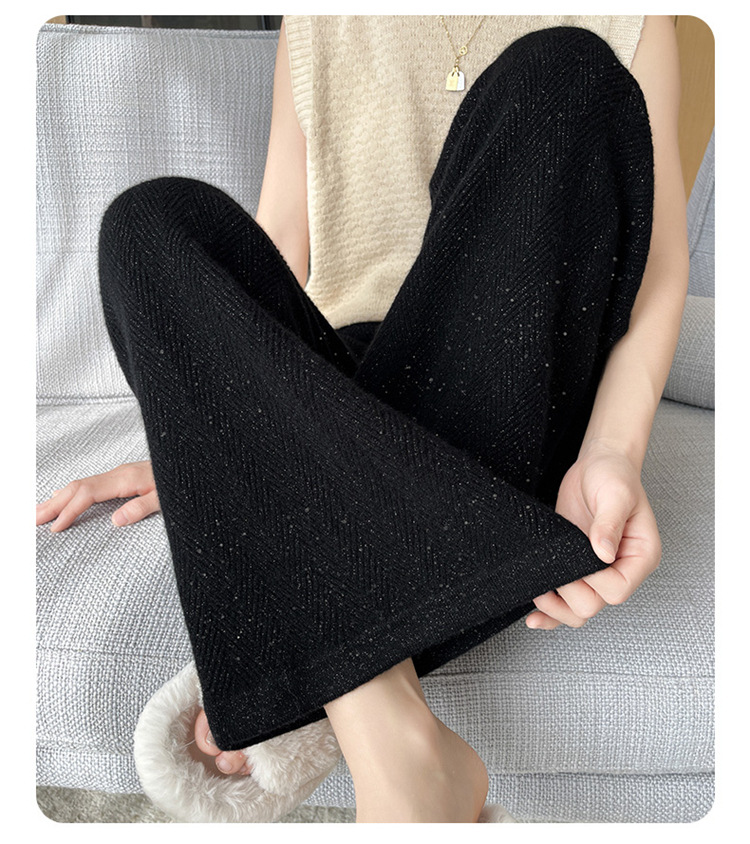 금색과 실버 실크 순수 양모 니트 넓은 다리 바지 여성용 외부 착용 높은 허리 포켓 스트레이트 슬림 레드 캐시미어 바지스토어 가기