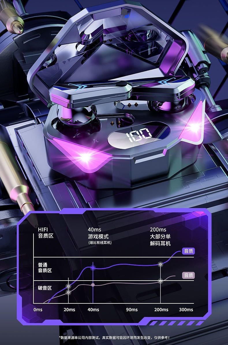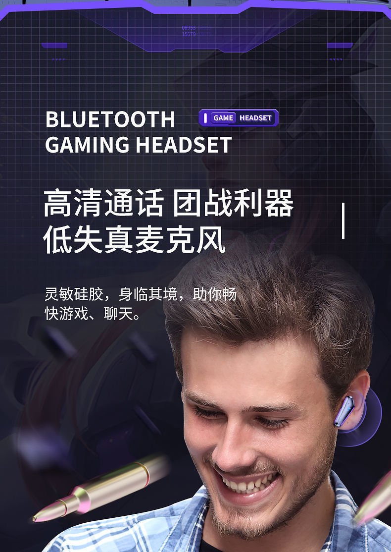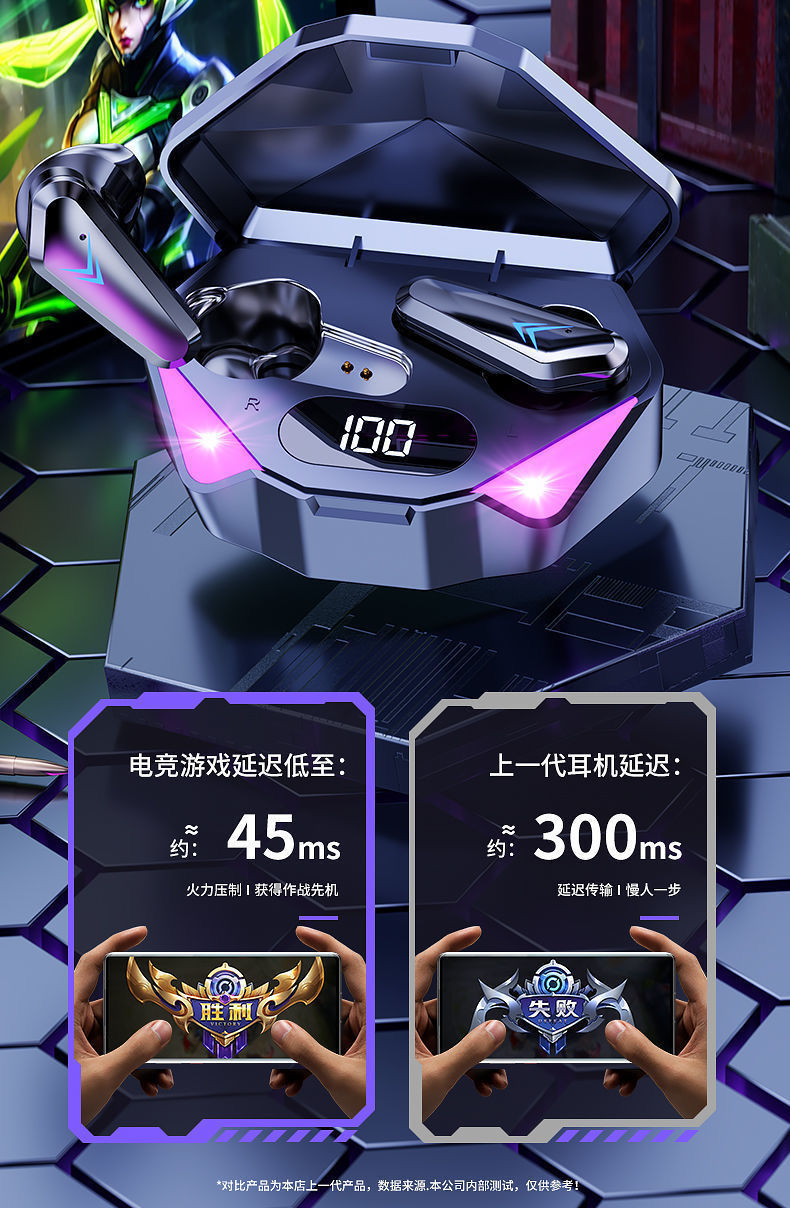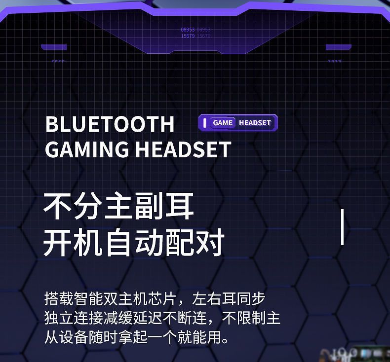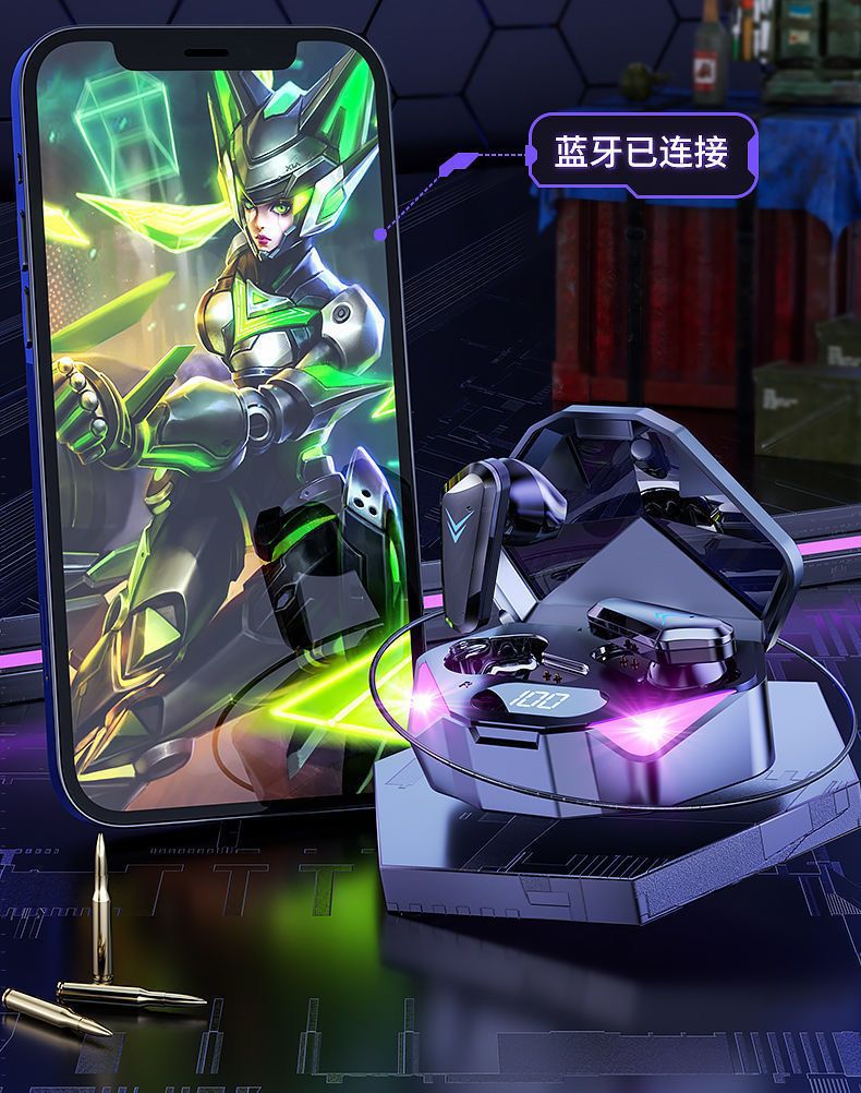 국경 간 전자 스포츠 아이 스마트 파워 디스플레이 무선 블루투스 헤드셋 인 이어 게임 음악 헤드셋 장수