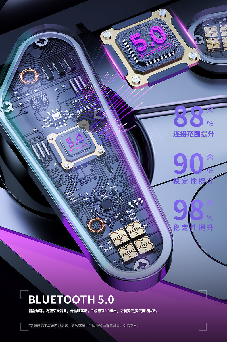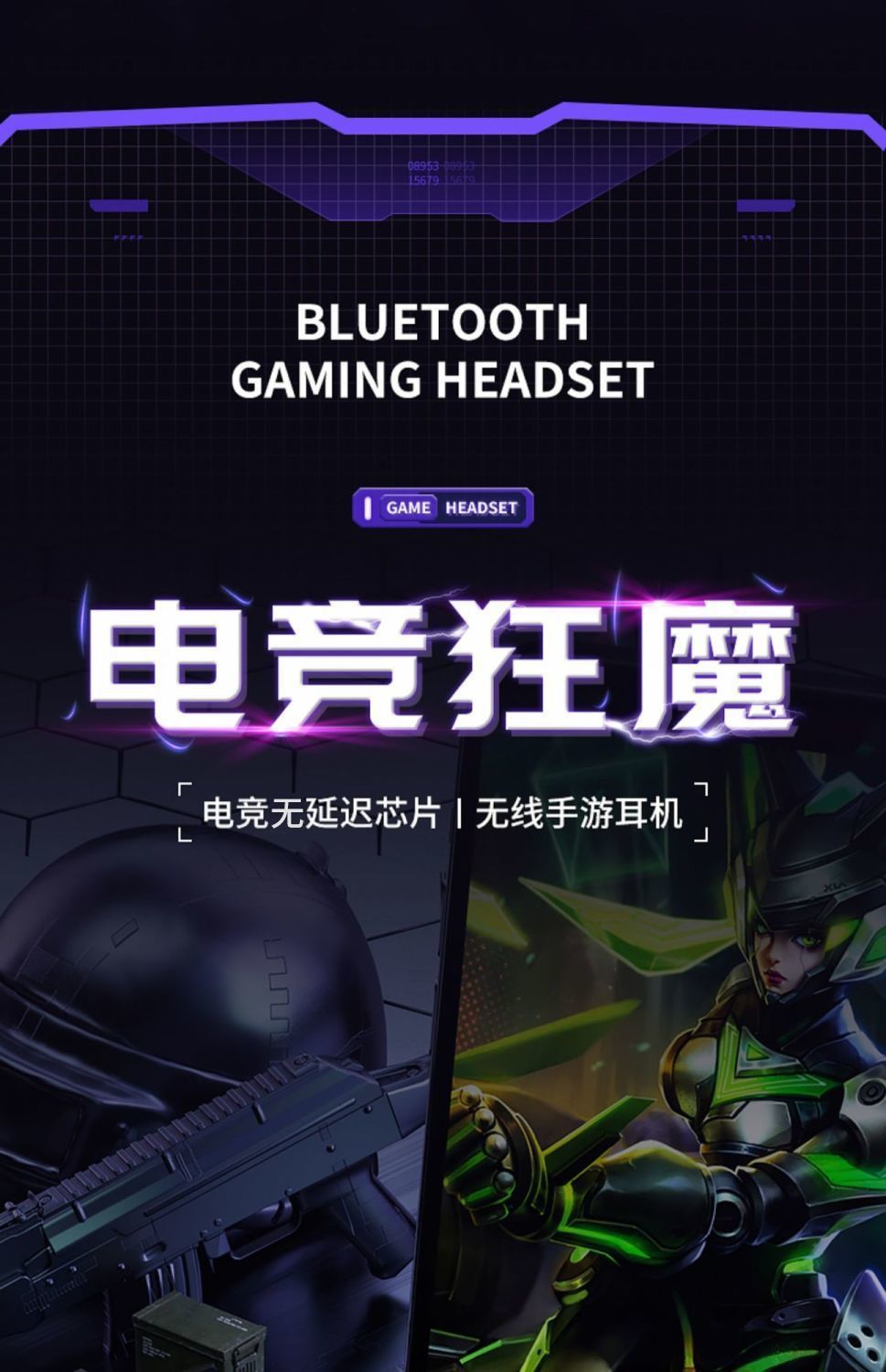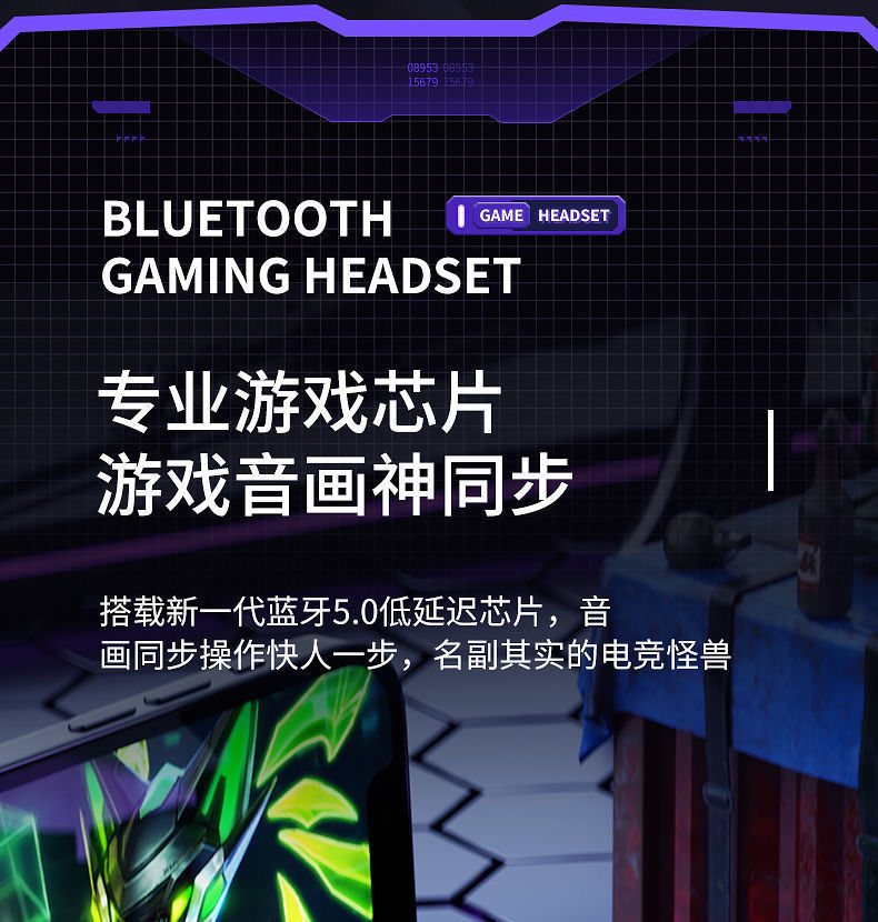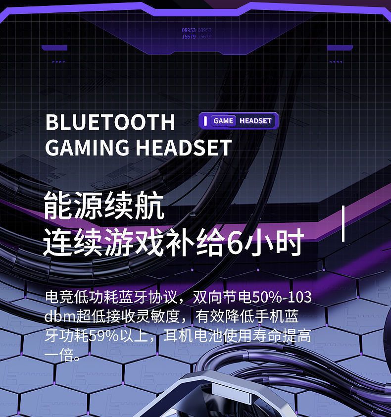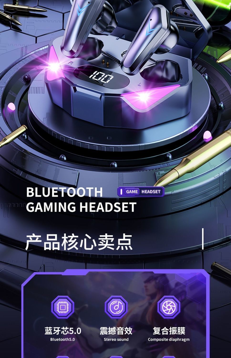국경 간 전자 스포츠 아이 스마트 파워 디스플레이 무선 블루투스 헤드셋 인 이어 게임 음악 헤드셋 장수
