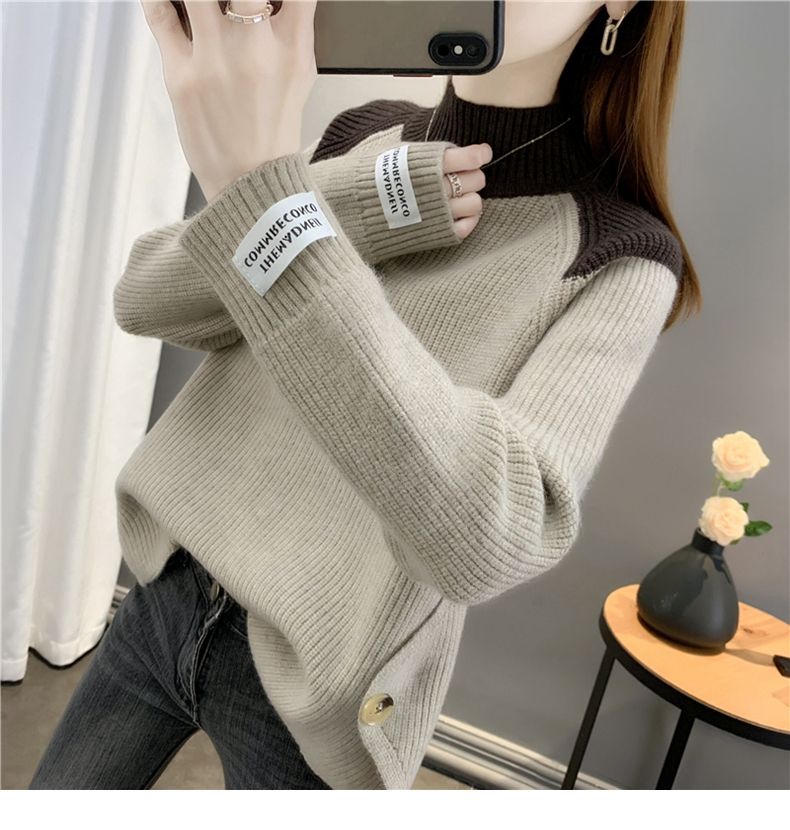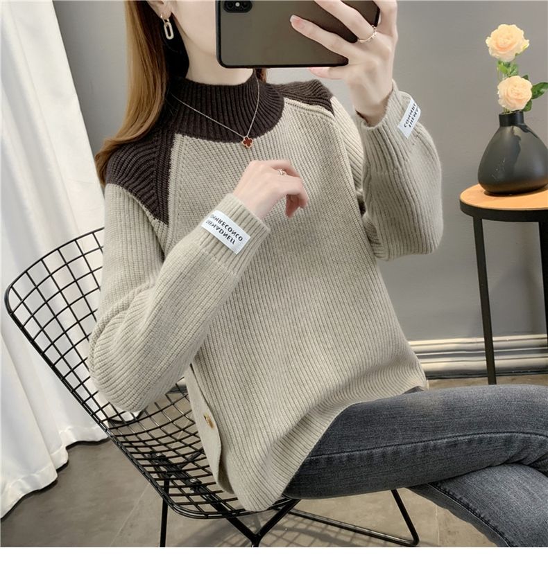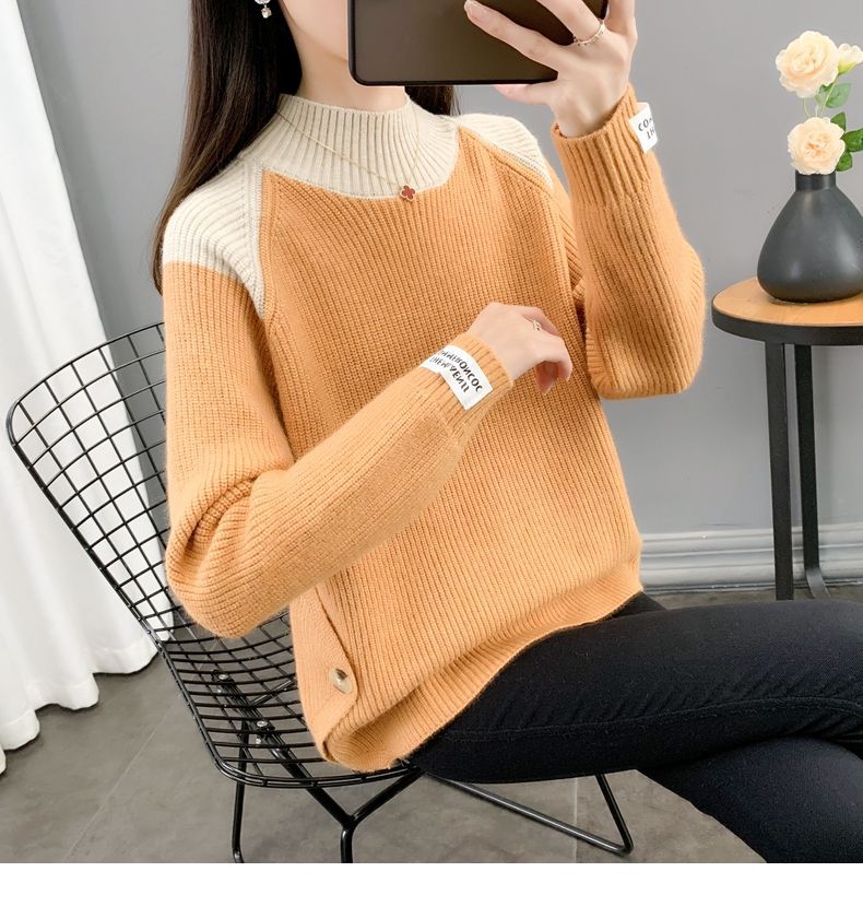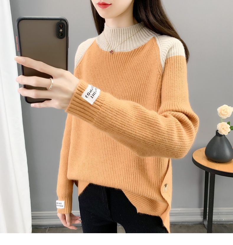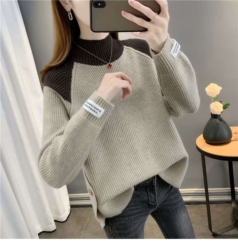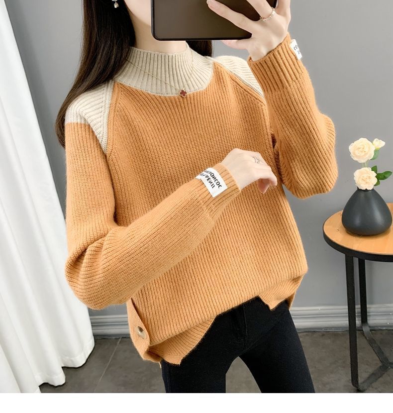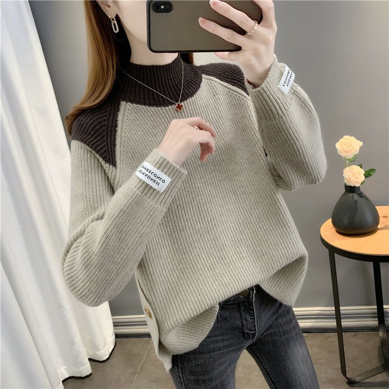 겨울 게으른 스타일 컬러 매칭 하프 터틀넥 스웨터 여성 스웨터 2023 새로운 패션 올 매치 바닥 셔츠 여성용 탑스토어 가기