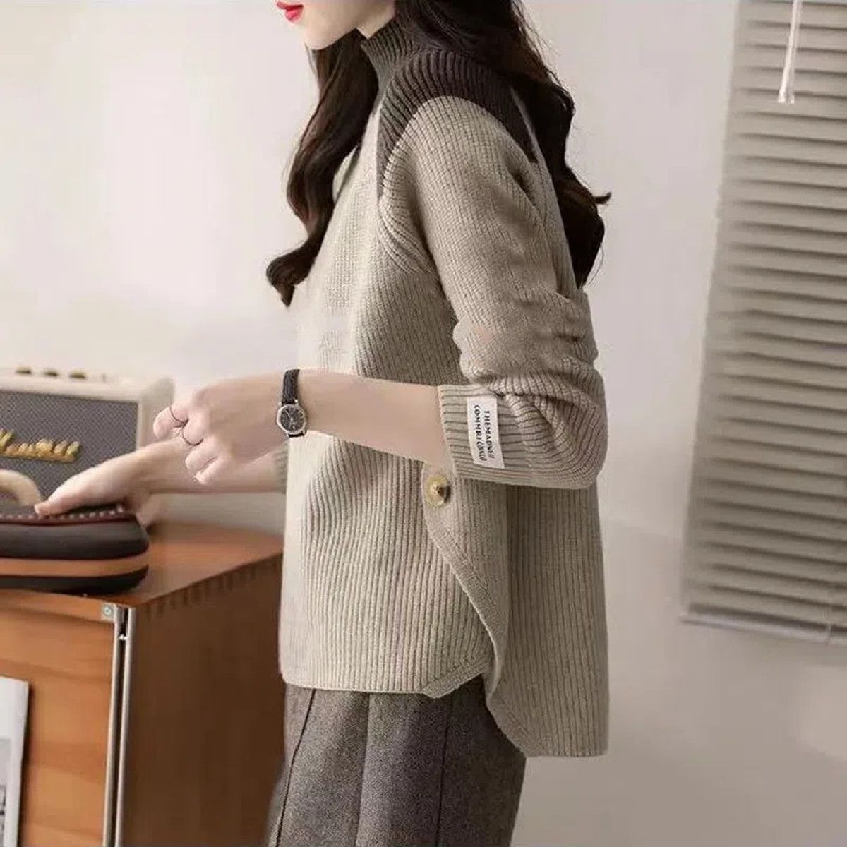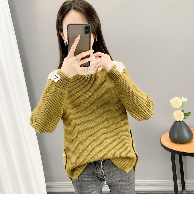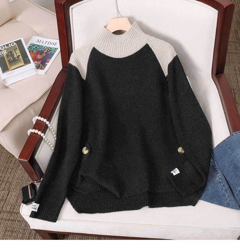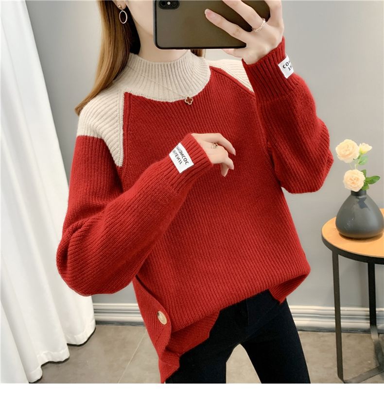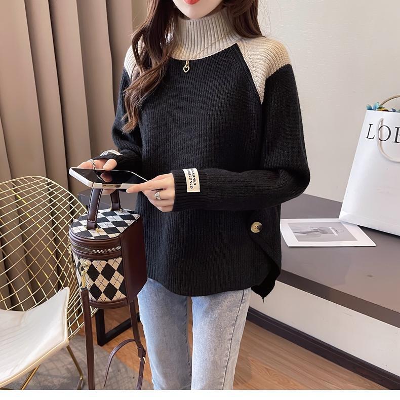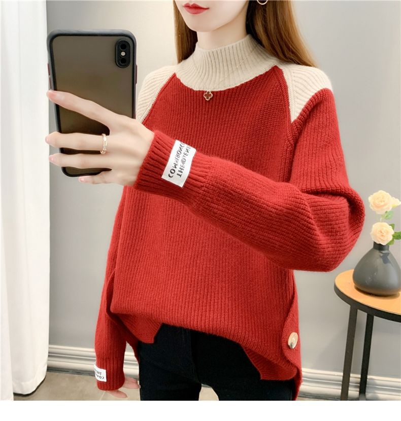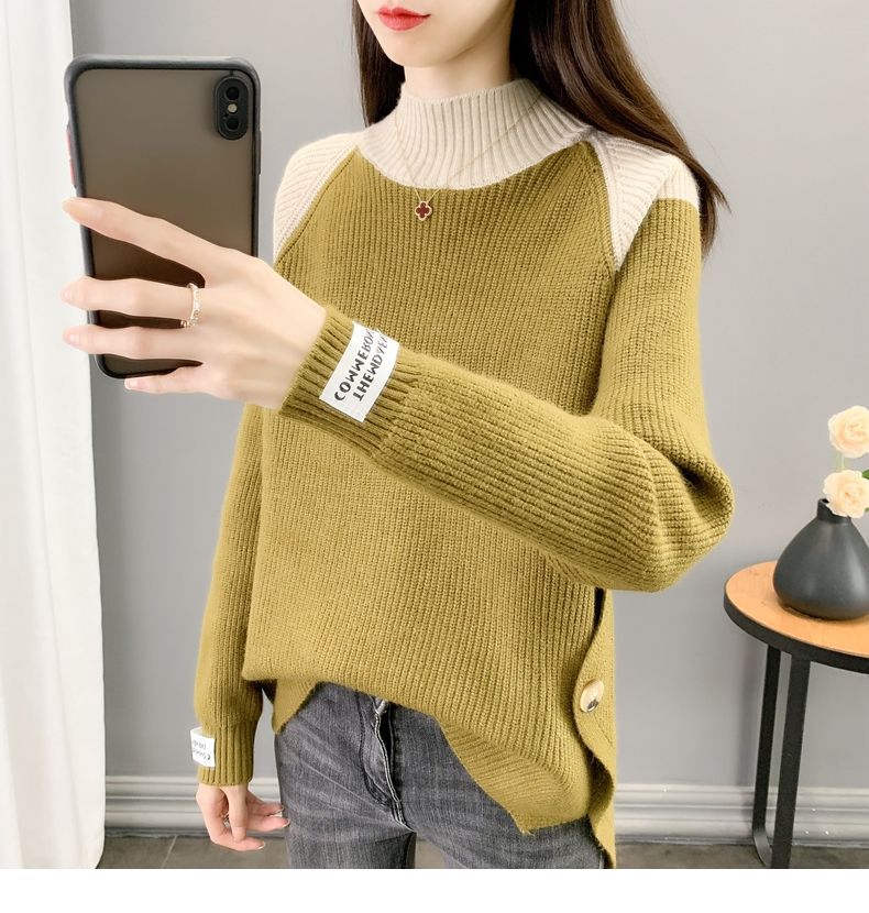 겨울 게으른 스타일 컬러 매칭 하프 터틀넥 스웨터 여성 스웨터 2023 새로운 패션 올 매치 바닥 셔츠 여성용 탑스토어 가기