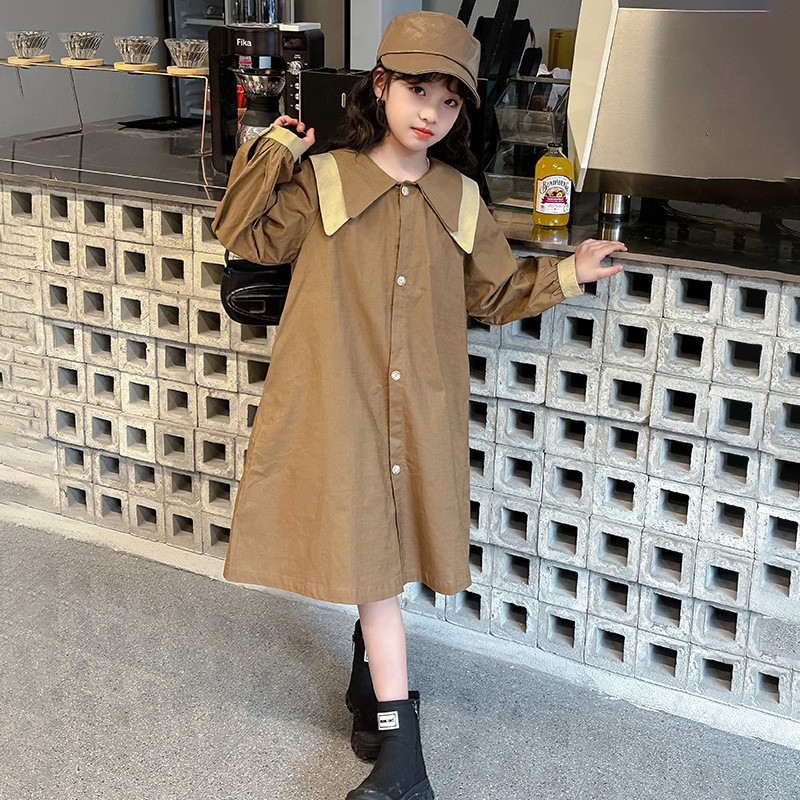 소녀 긴 트렌치 코트 봄과 가을 의류 2024 새로운 어린이 모리 원피스 유행 서양식 아기 소녀의 큰 아이들스토어 가기