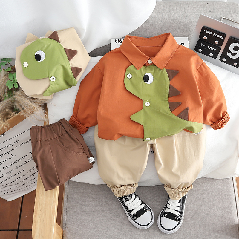 2024 봄 새 소년 만화 옷깃 셔츠 긴 소매 세트 소년 캐주얼 바지 투피스 세트스토어 가기