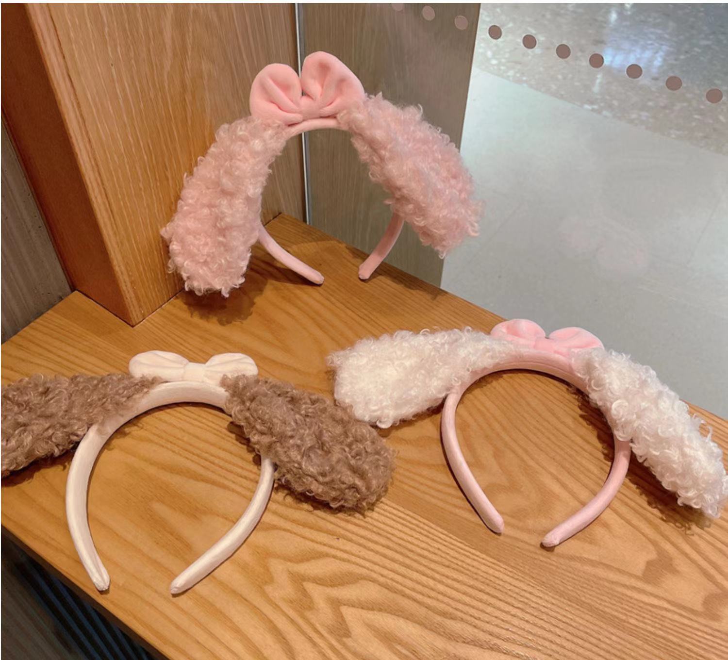 달리는 공주 ~ 달콤한 귀여운 나비 매듭 강아지 귀 머리띠 강아지 머리띠 플러시 머리핀 동물 머리 장식
