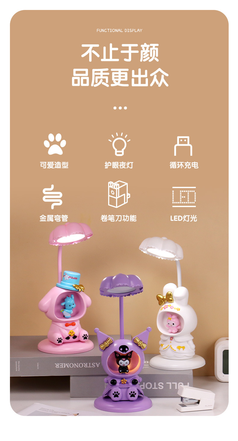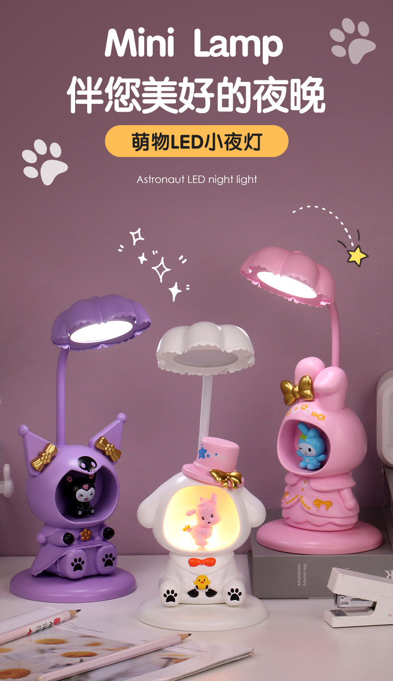 대외 무역 산리오 우주 캡슐 쿨로 미 테이블 램프 LED 만화 데스크탑 충전 인형 장식 어린이 야간 조명
