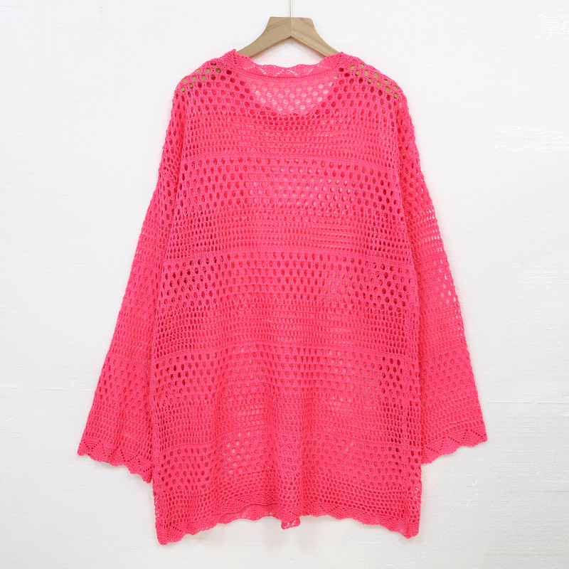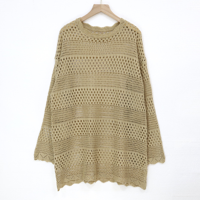 긴팔 할로우 아웃 니트 스웨터 2024 여름 새로운 유럽과 미국 해변 오버 셔츠 느슨한 게으른 선스크린 탑스토어 가기