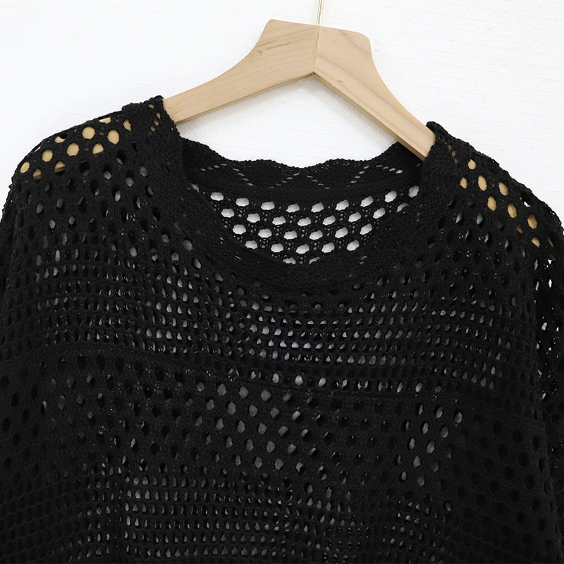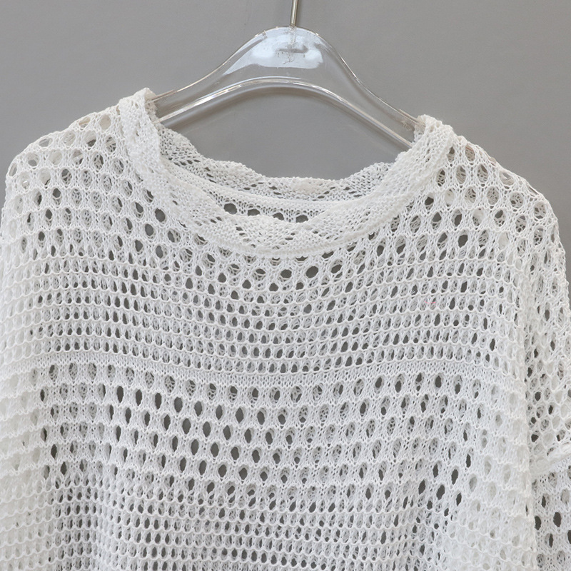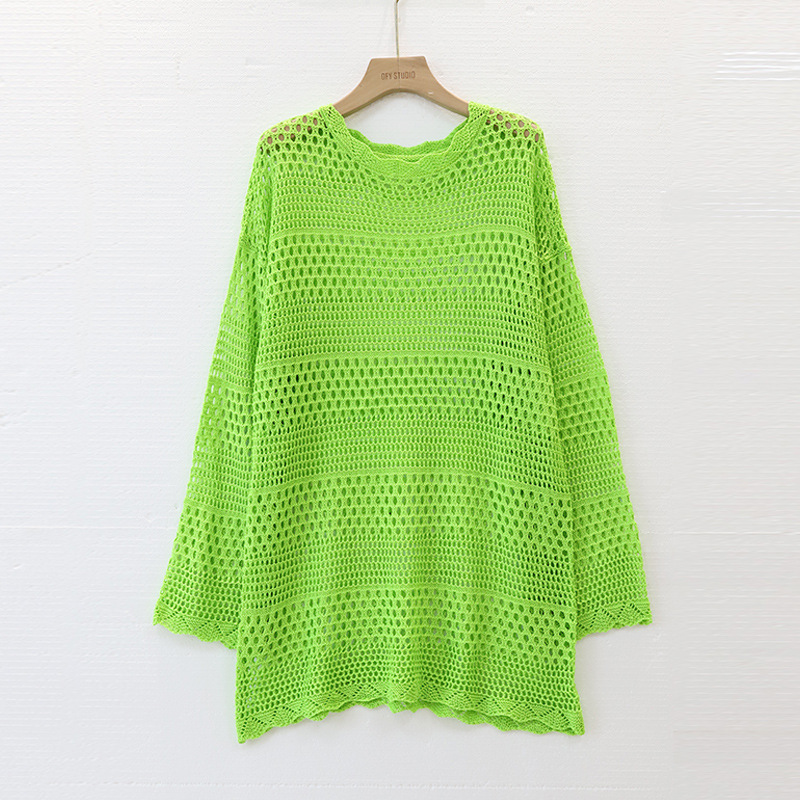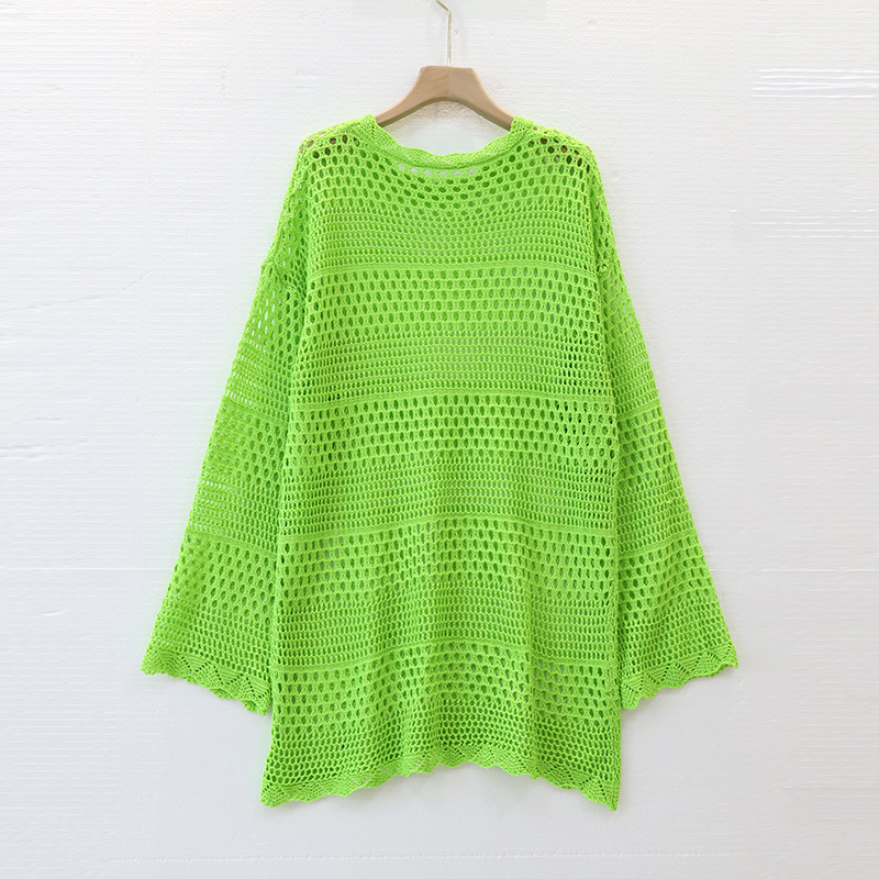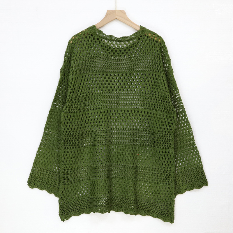 긴팔 할로우 아웃 니트 스웨터 2024 여름 새로운 유럽과 미국 해변 오버 셔츠 느슨한 게으른 선스크린 탑