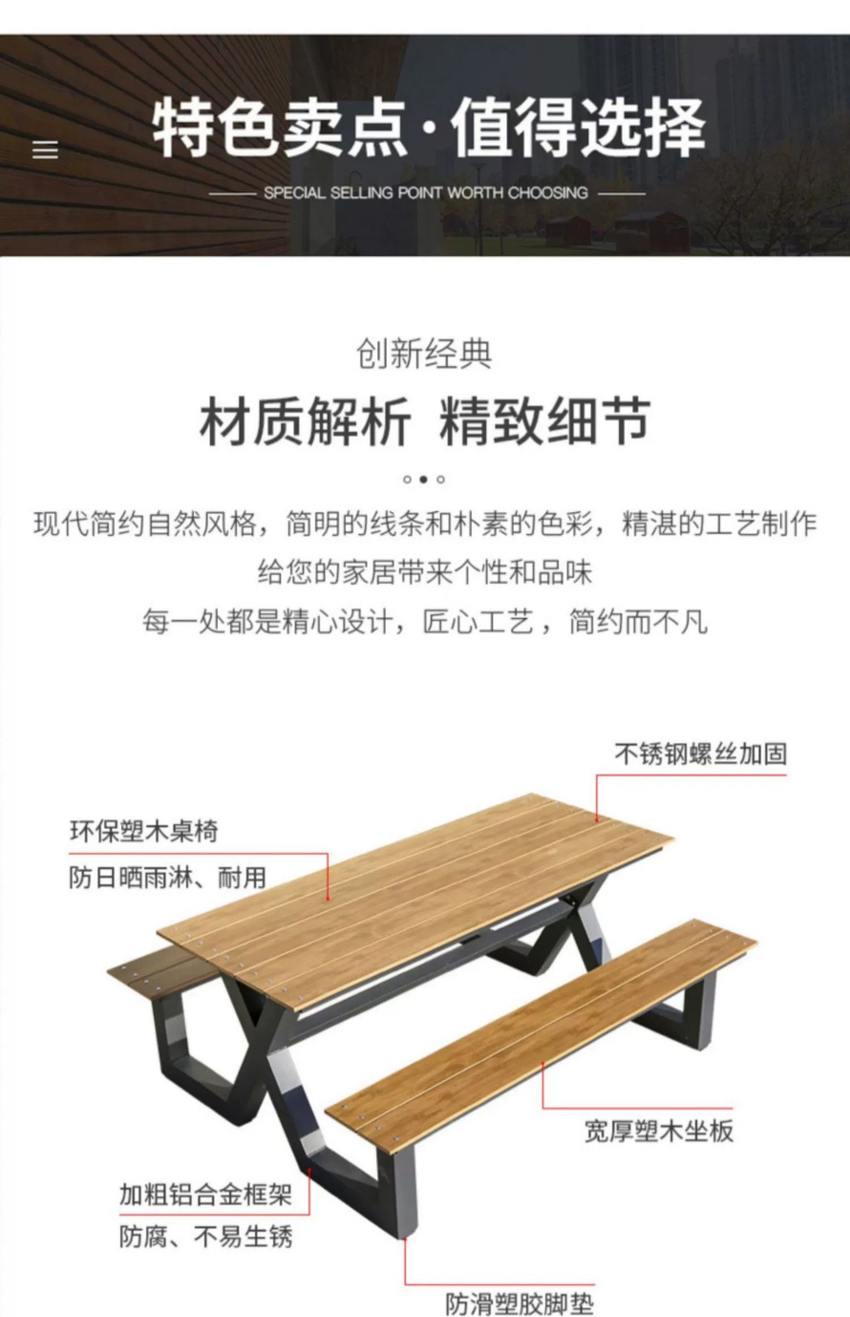 야외 통합 공원 의자 해변 플라스틱 나무 테이블 야외 마구간 바다 전망 방 수영장 레저 부식 방지 목재 테이블 및 의자스토어 가기