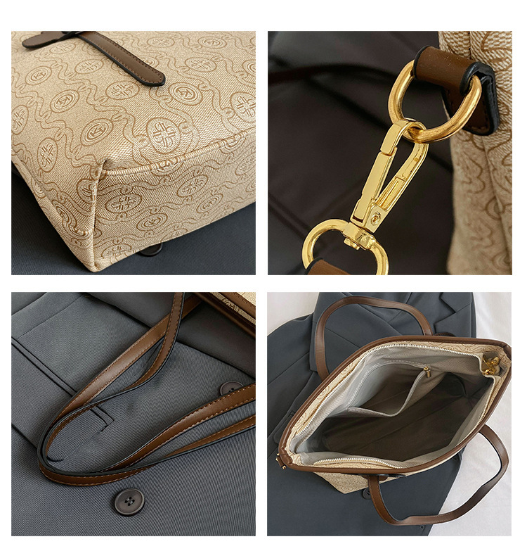여성 가방 2024 새로운 고급 인쇄 토트 백 유행 복고풍 숄더백 틈새 디자인 유행 핸드백스토어 가기