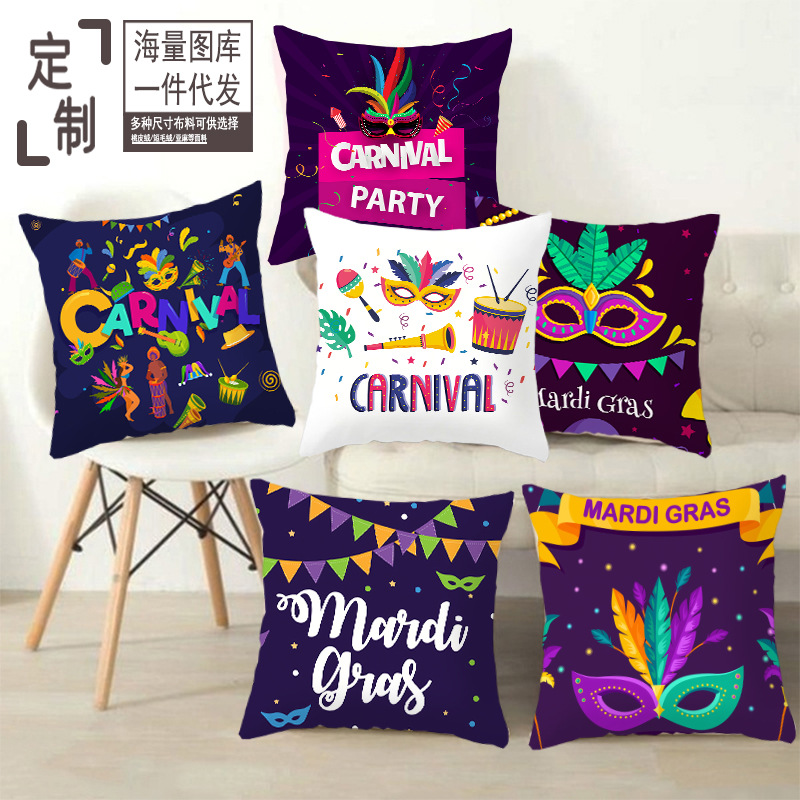 국경 간 브라질 카니발 베개 케이스 복숭아 피부 벨벳 마스크 베개 홈 홀리데이 장식 침대 옆 사각형 베개스토어 가기