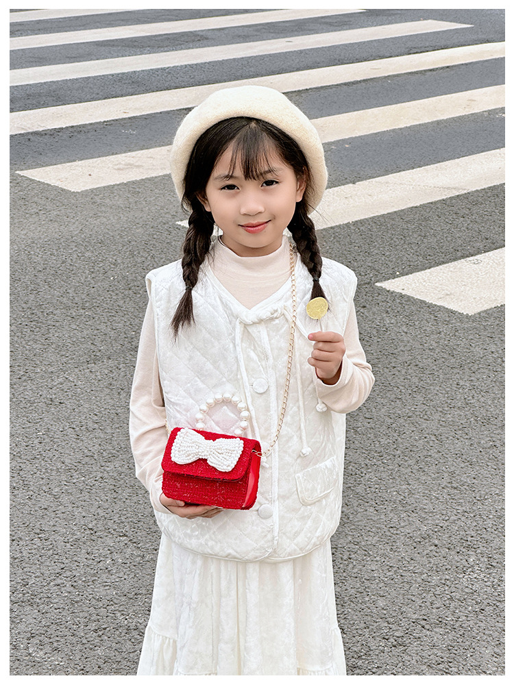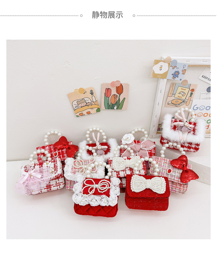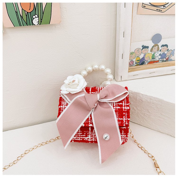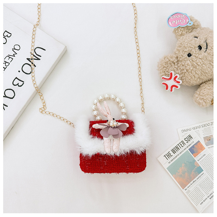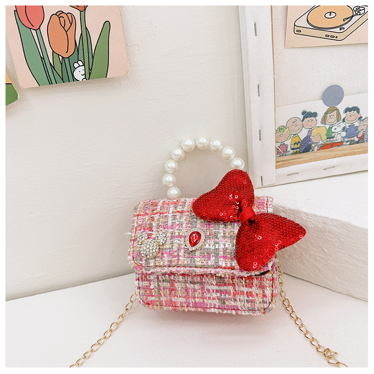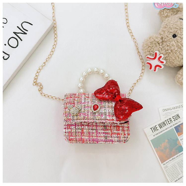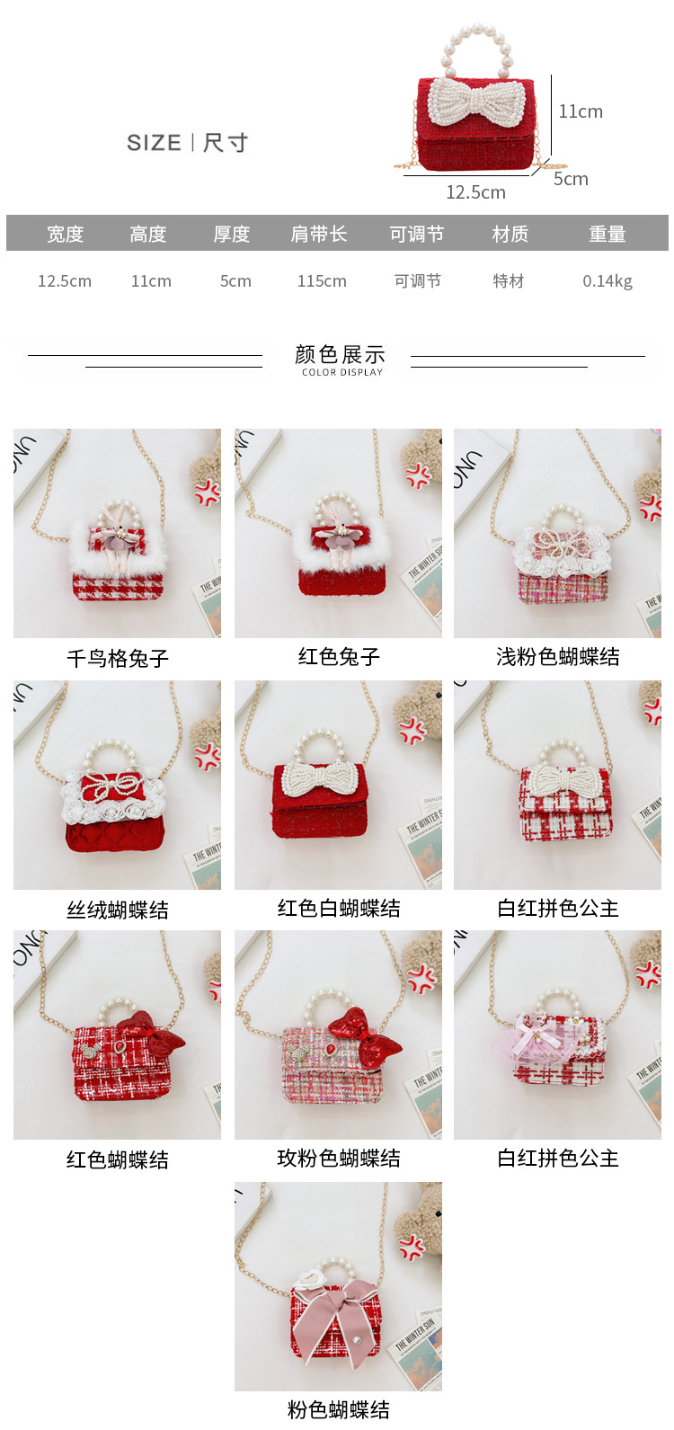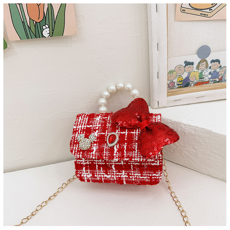 가을과 겨울 새로운 어린이 공주 가방 빨간 작은 광장 가방 소녀 체인 어깨 크로스 바디 가방 진주 손 동전 지갑