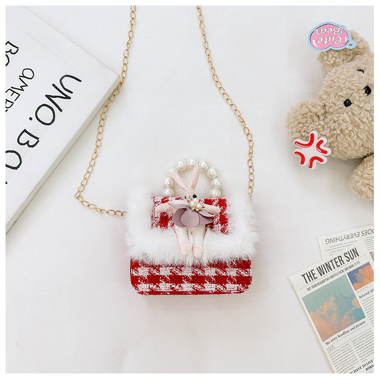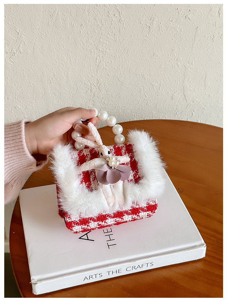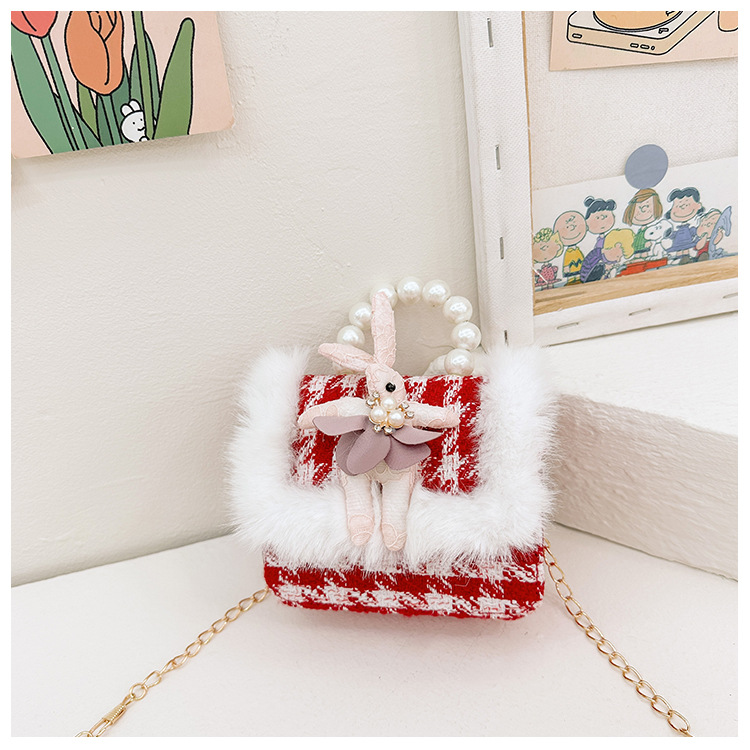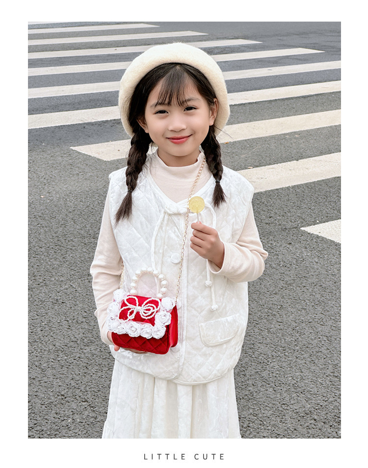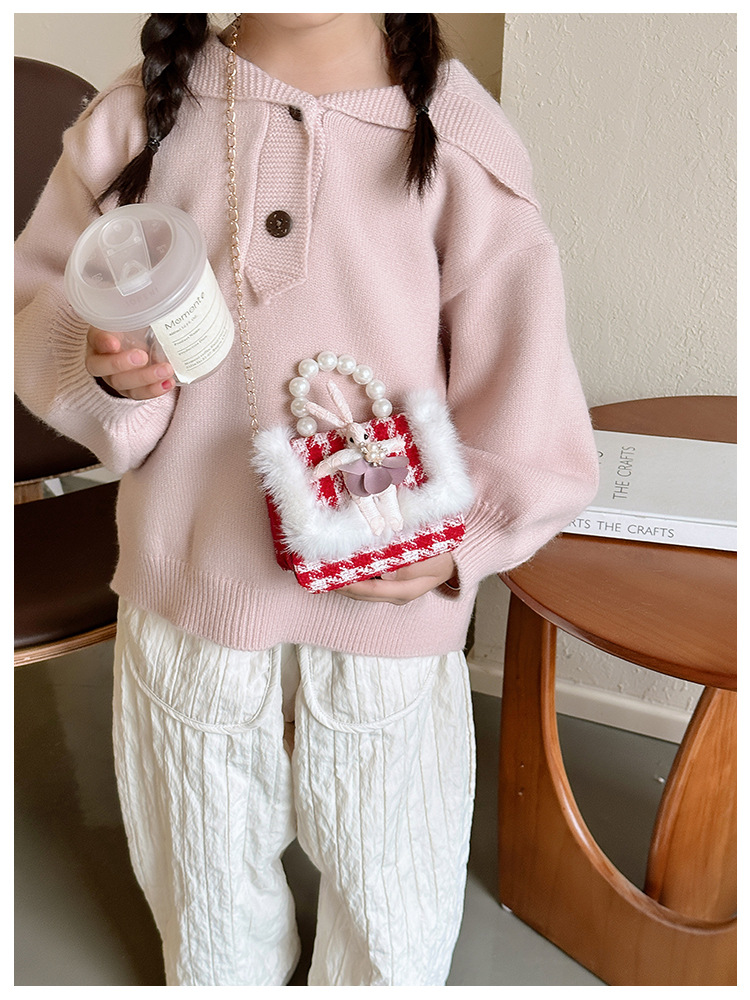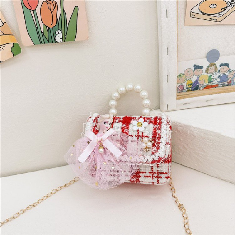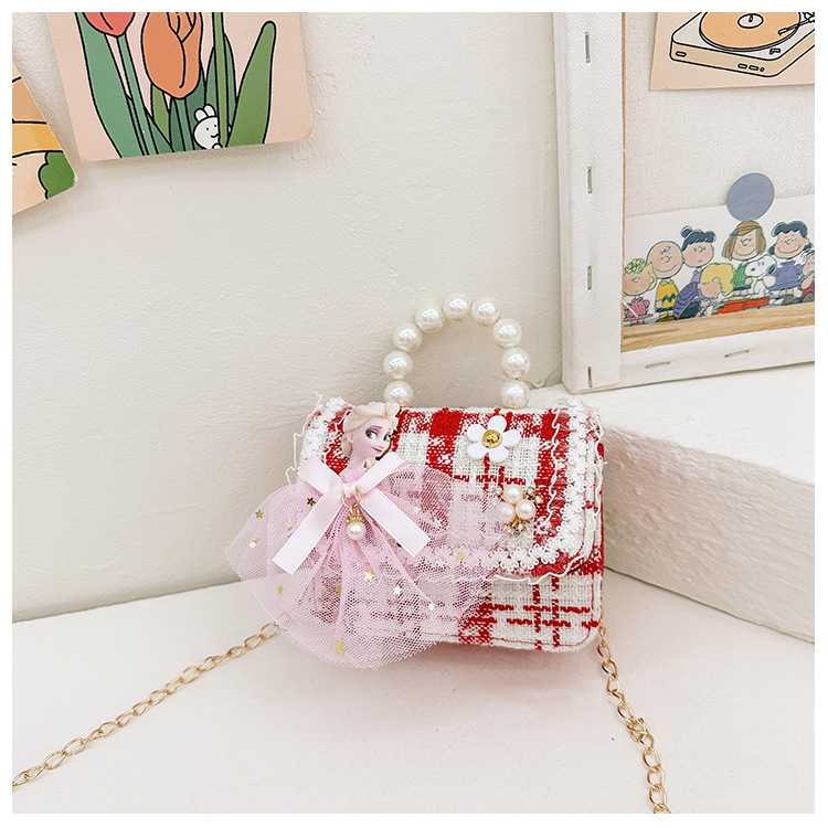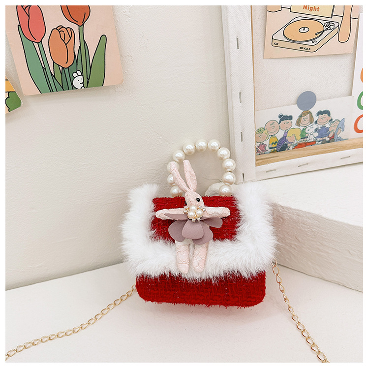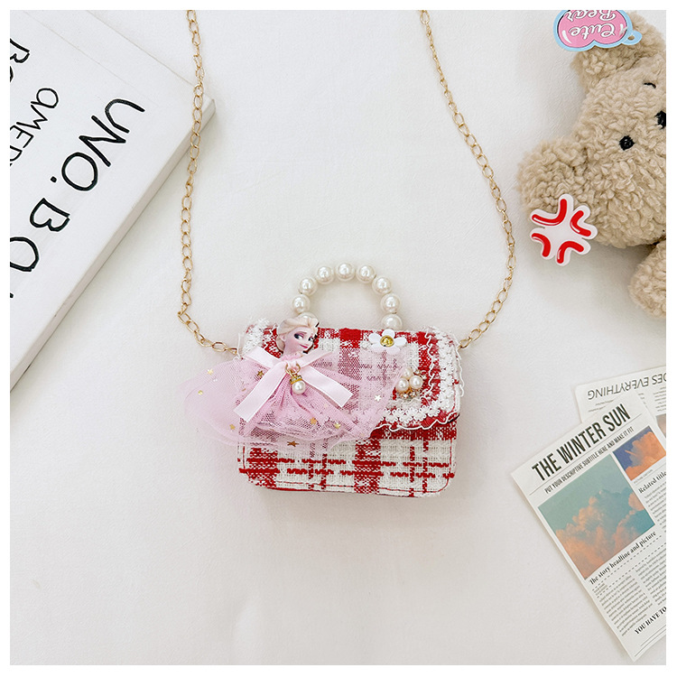 가을과 겨울 새로운 어린이 공주 가방 빨간 작은 광장 가방 소녀 체인 어깨 크로스 바디 가방 진주 손 동전 지갑