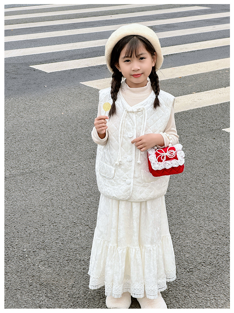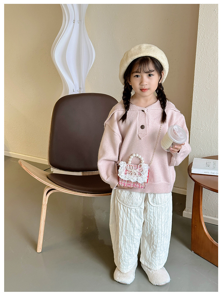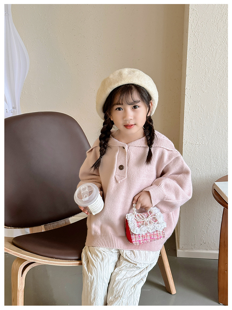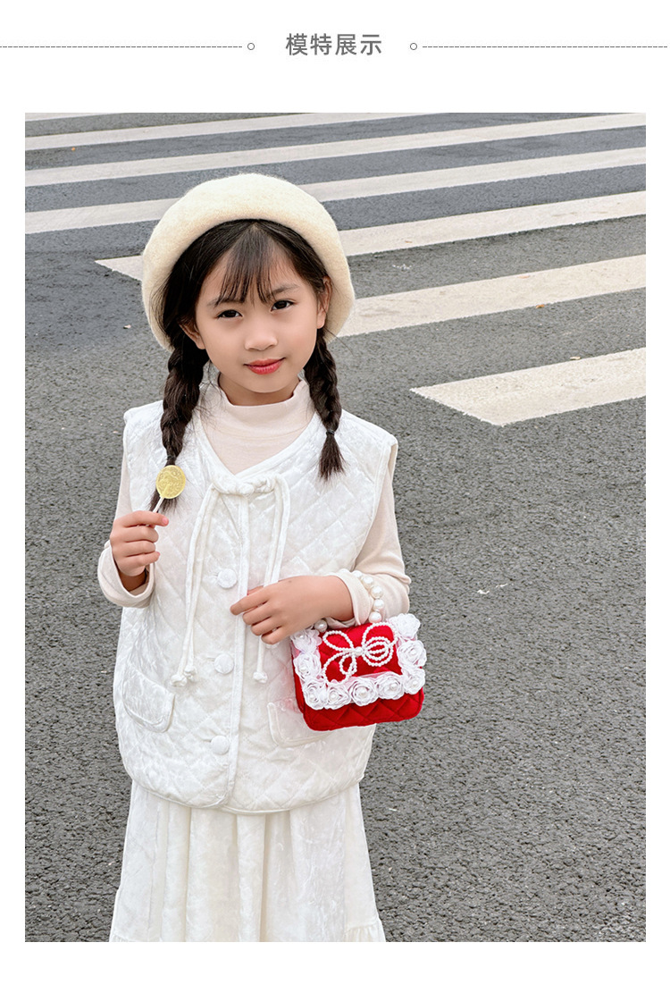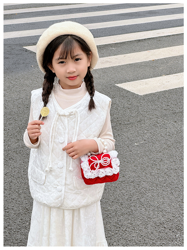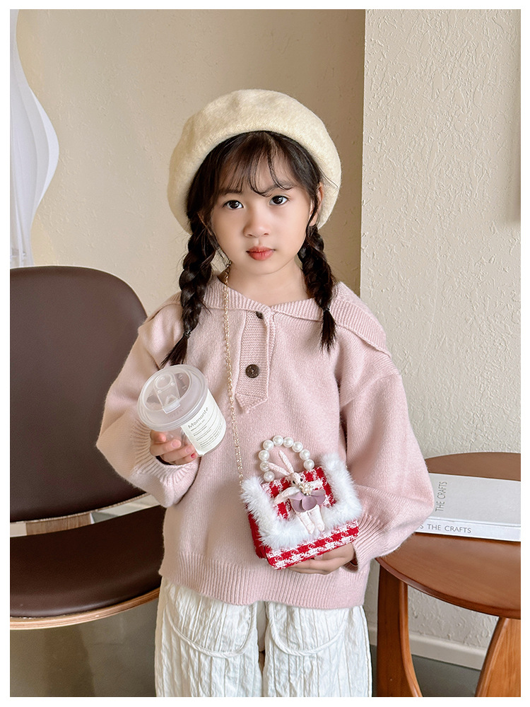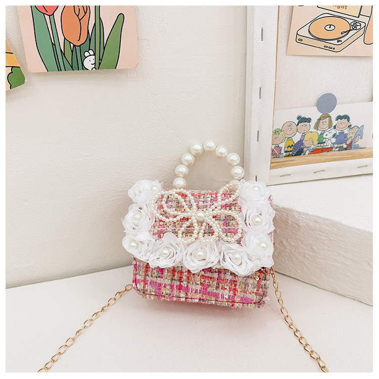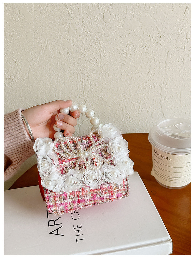 가을과 겨울 새로운 어린이 공주 가방 빨간 작은 광장 가방 소녀 체인 어깨 크로스 바디 가방 진주 손 동전 지갑
