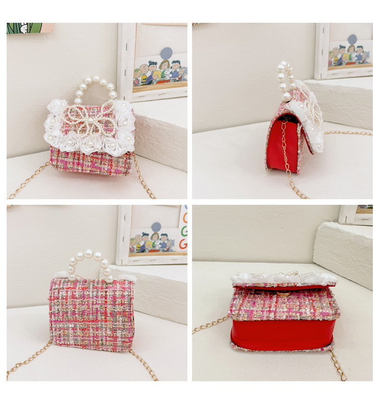 가을과 겨울 새로운 어린이 공주 가방 빨간 작은 광장 가방 소녀 체인 어깨 크로스 바디 가방 진주 손 동전 지갑스토어 가기