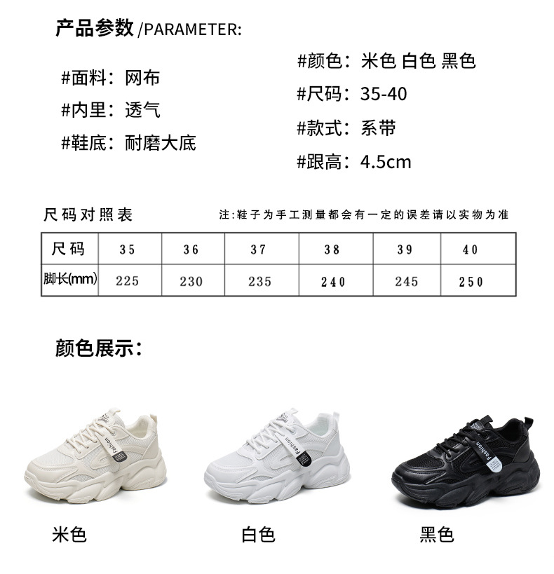 尺码: 标准尺码,脚宽厚的MM可以考虑选大一码、
