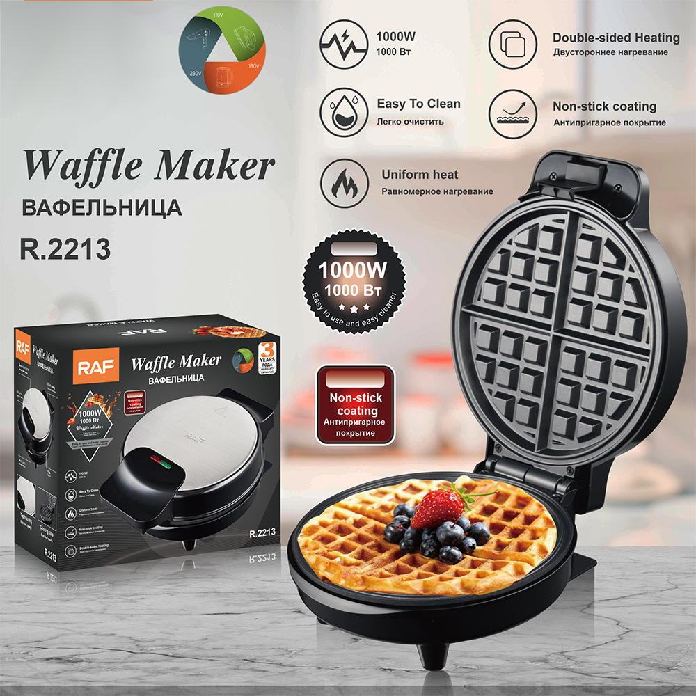 欧规220V家用早餐机华夫饼机双面加热电饼铛轻食机电饼铛鸡蛋卷机