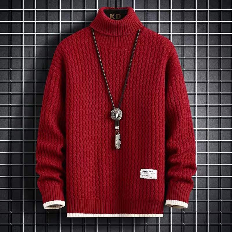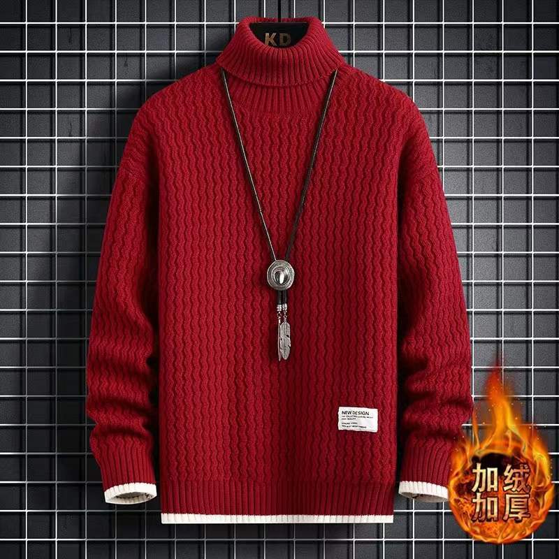 터틀넥 스웨터 남성용 트렌디 한 붉은 가을과 겨울 따뜻한 겨울 바닥 기모 두꺼운 스웨터 스웨터스토어 가기