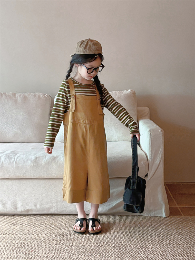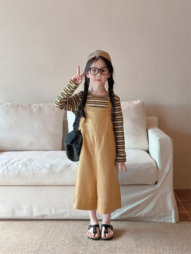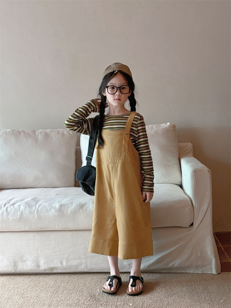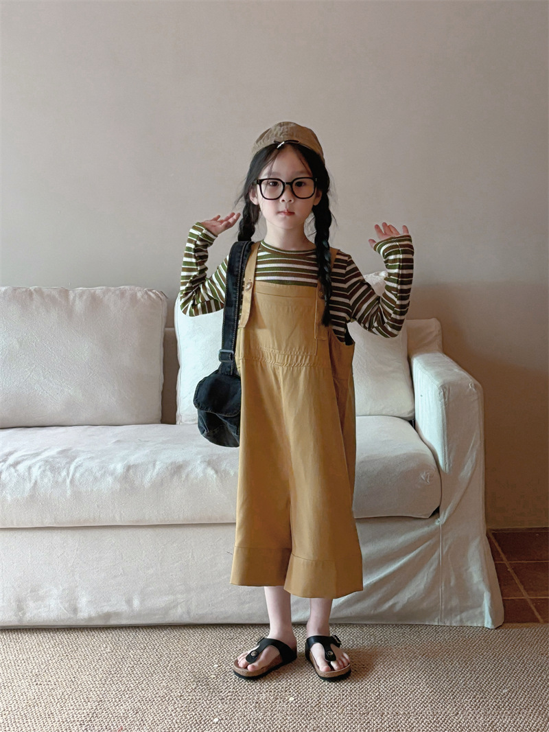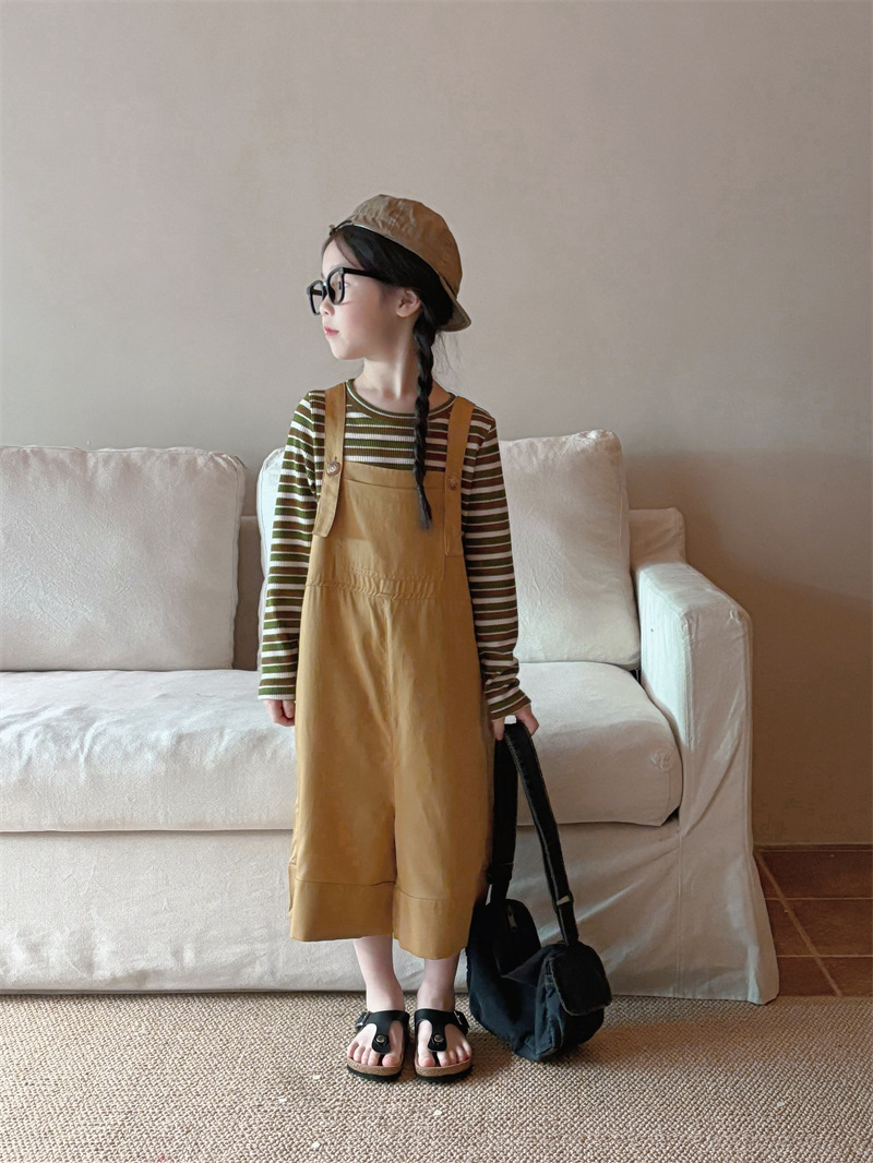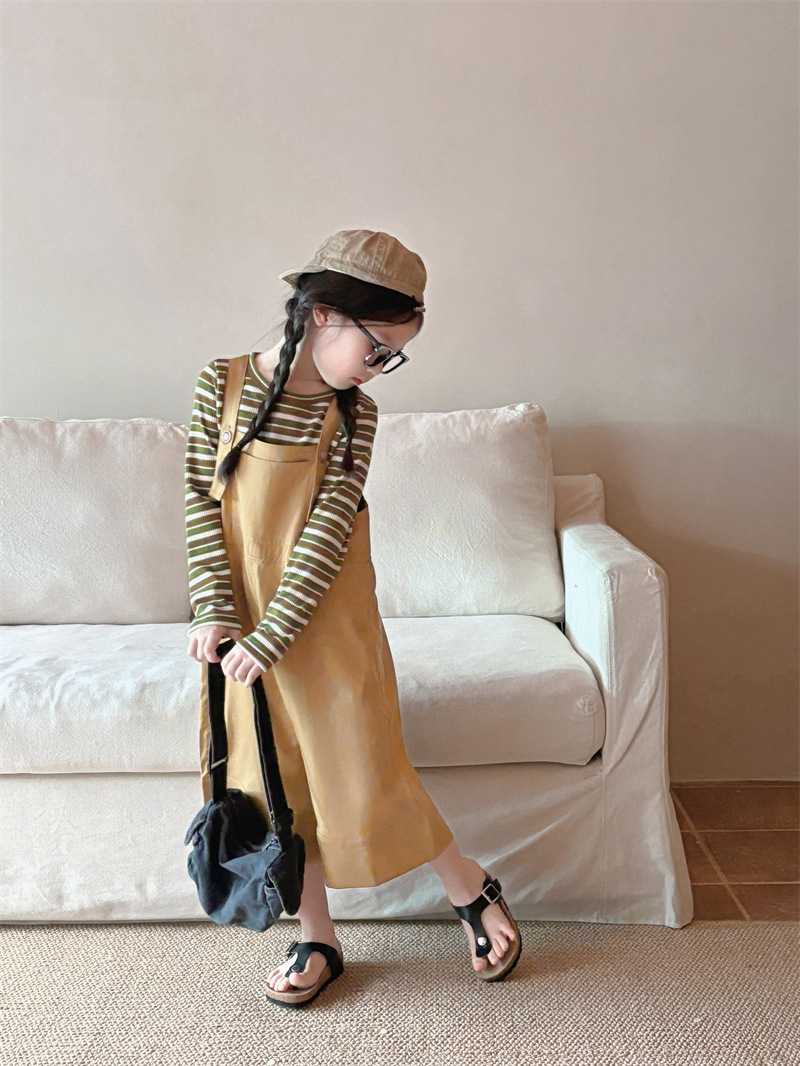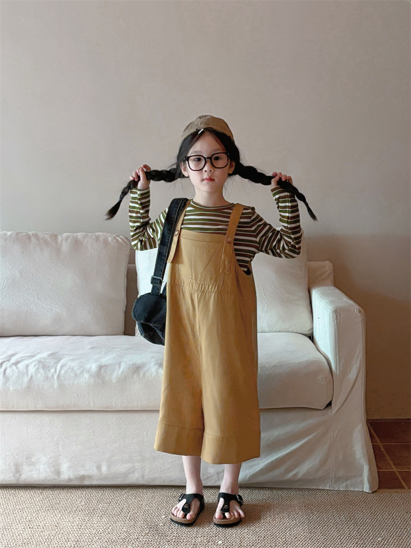 소녀 한국 스타일의 세련된 노란색 멜빵 2024 바지 봄과 여름 새로운 아기 복고풍 간단한 캐주얼 바지 트렌디 T162
