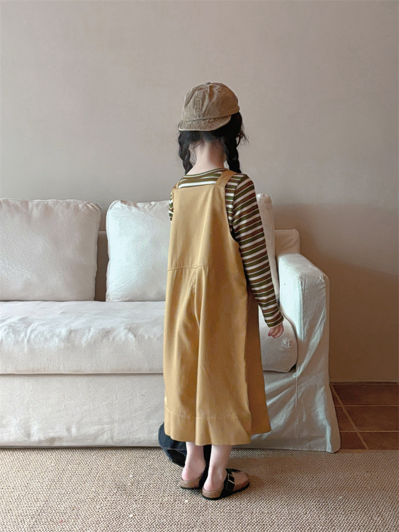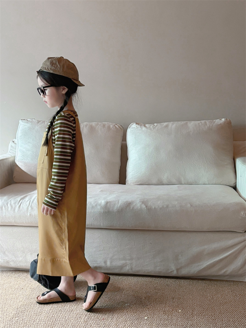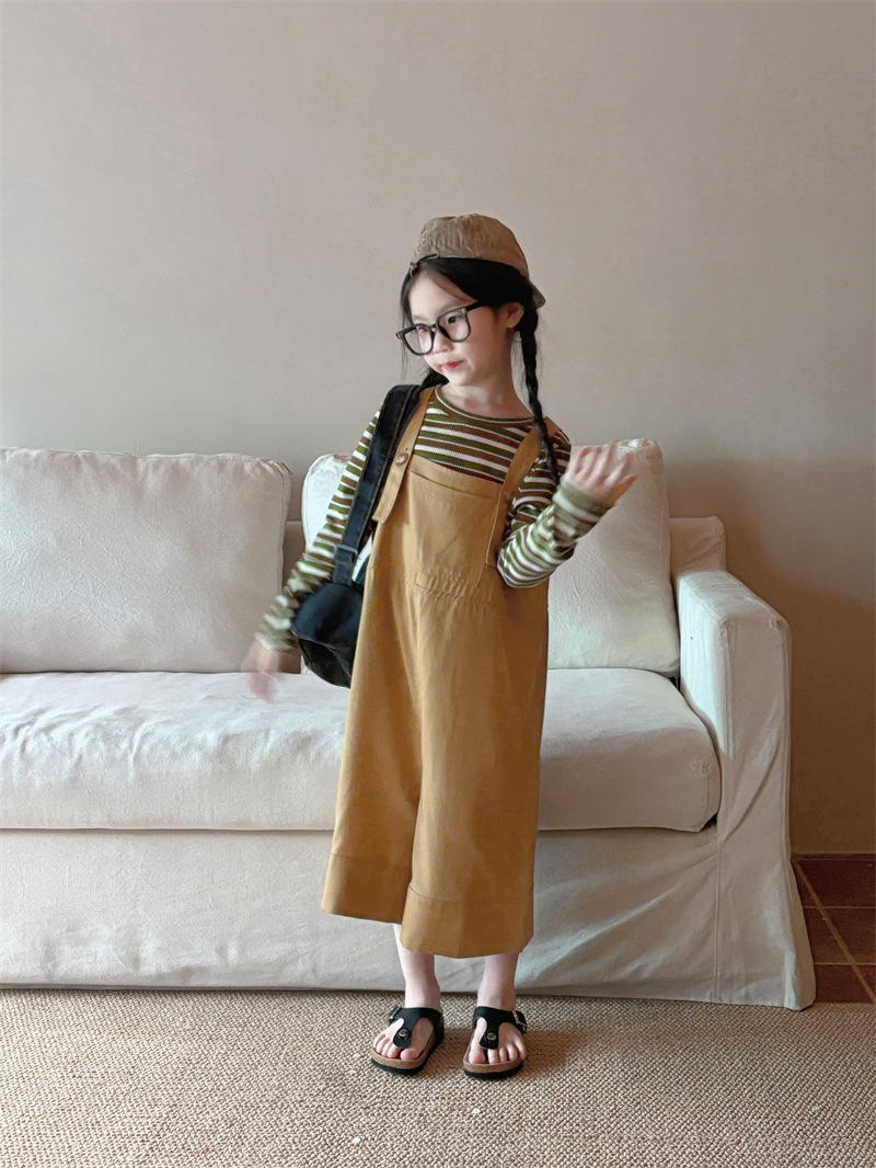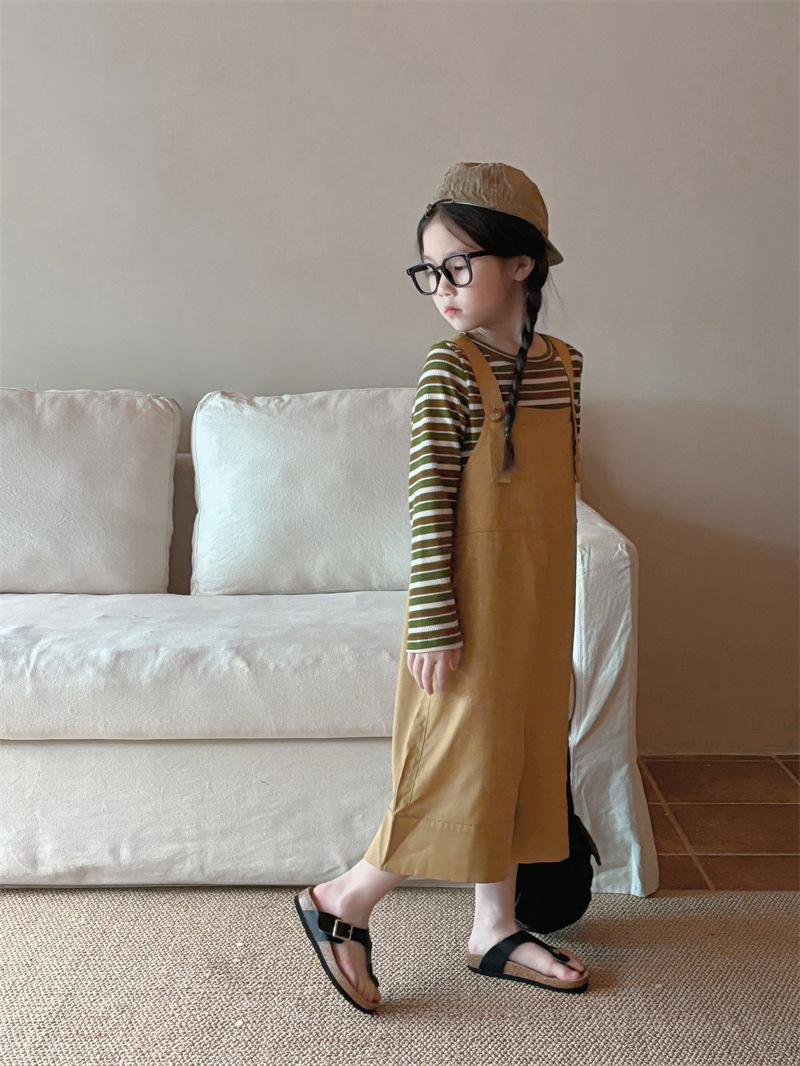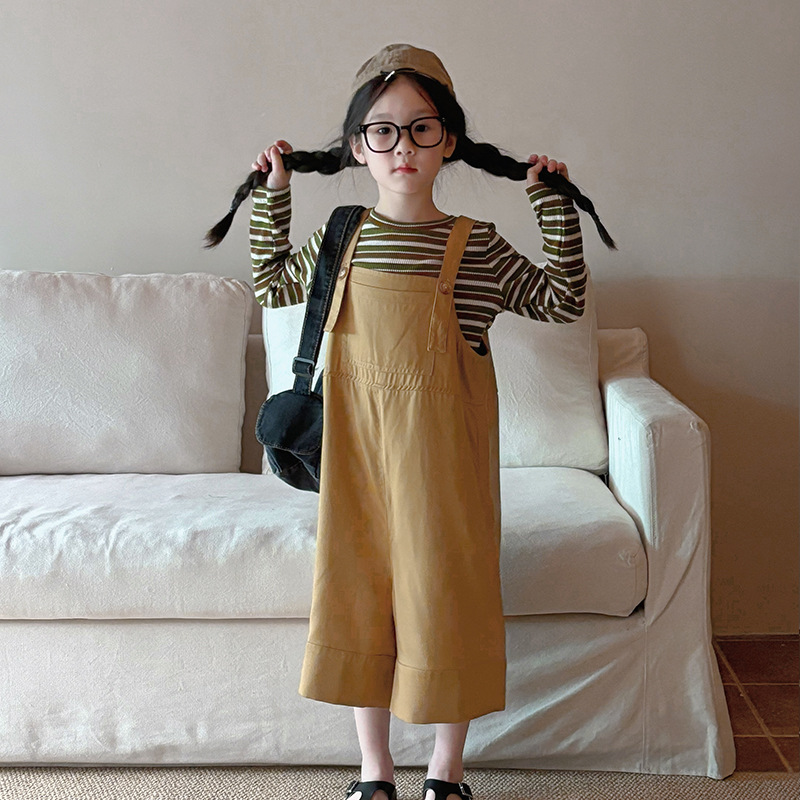 소녀 한국 스타일의 세련된 노란색 멜빵 2024 바지 봄과 여름 새로운 아기 복고풍 간단한 캐주얼 바지 트렌디 T162스토어 가기