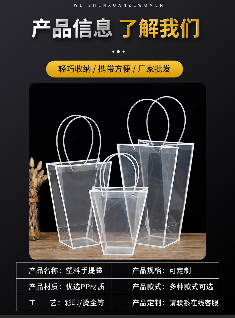 Pp 핸드백 도매 인터넷 유명 인사 스톨 투명 꽃 가방 꽃 포장 꽃 pvc 핸드백 꽃다발 꽃 소재스토어 가기