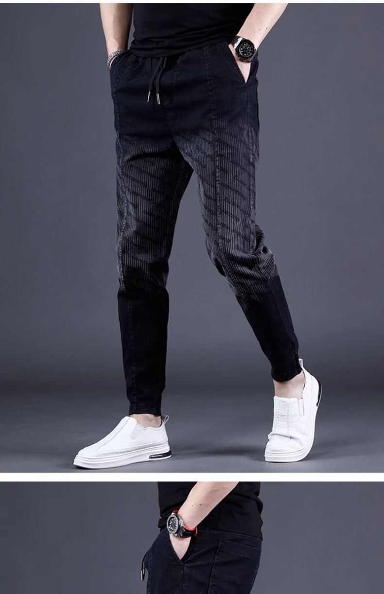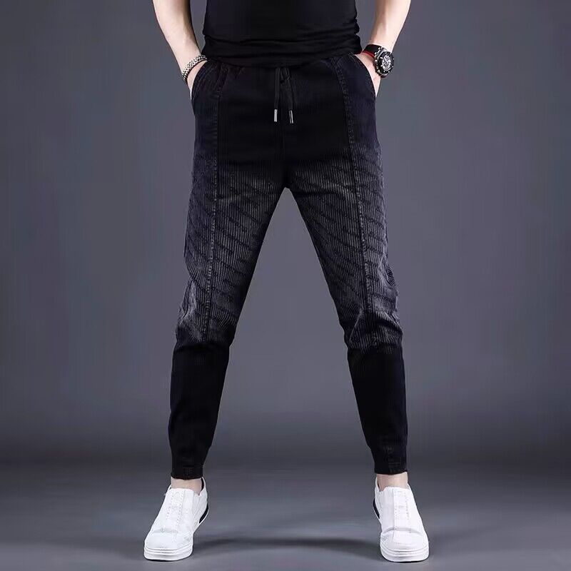 그라디언트 컬러 발목 묶인 청바지 남성용 느슨한 봄과 가을 새로운 레이스 업 스키니 팬츠 패션 브랜드 하렘 캐주얼 올 매치