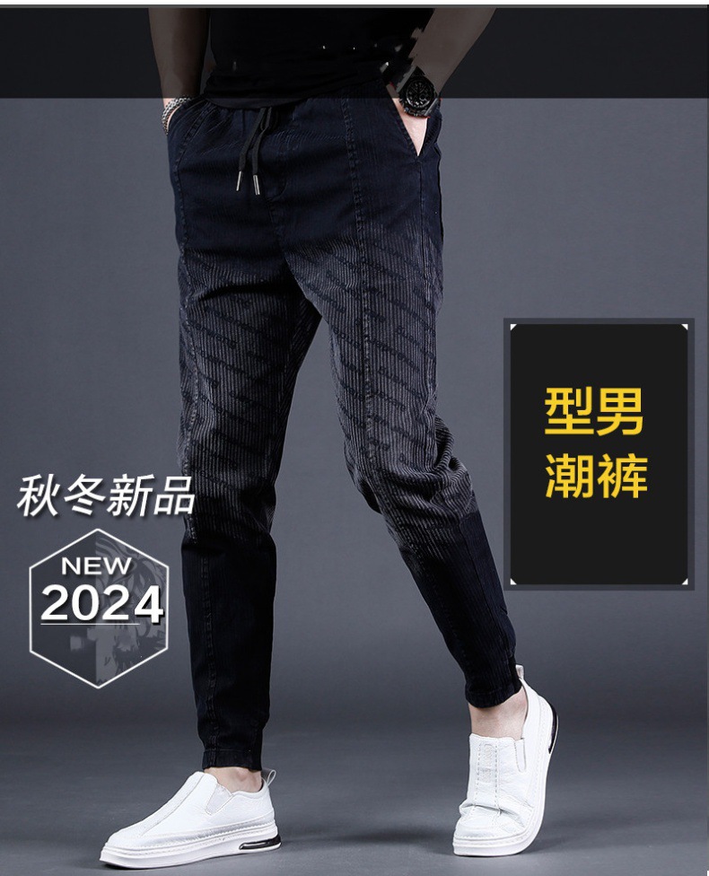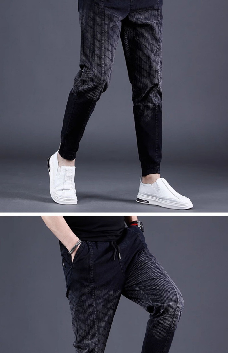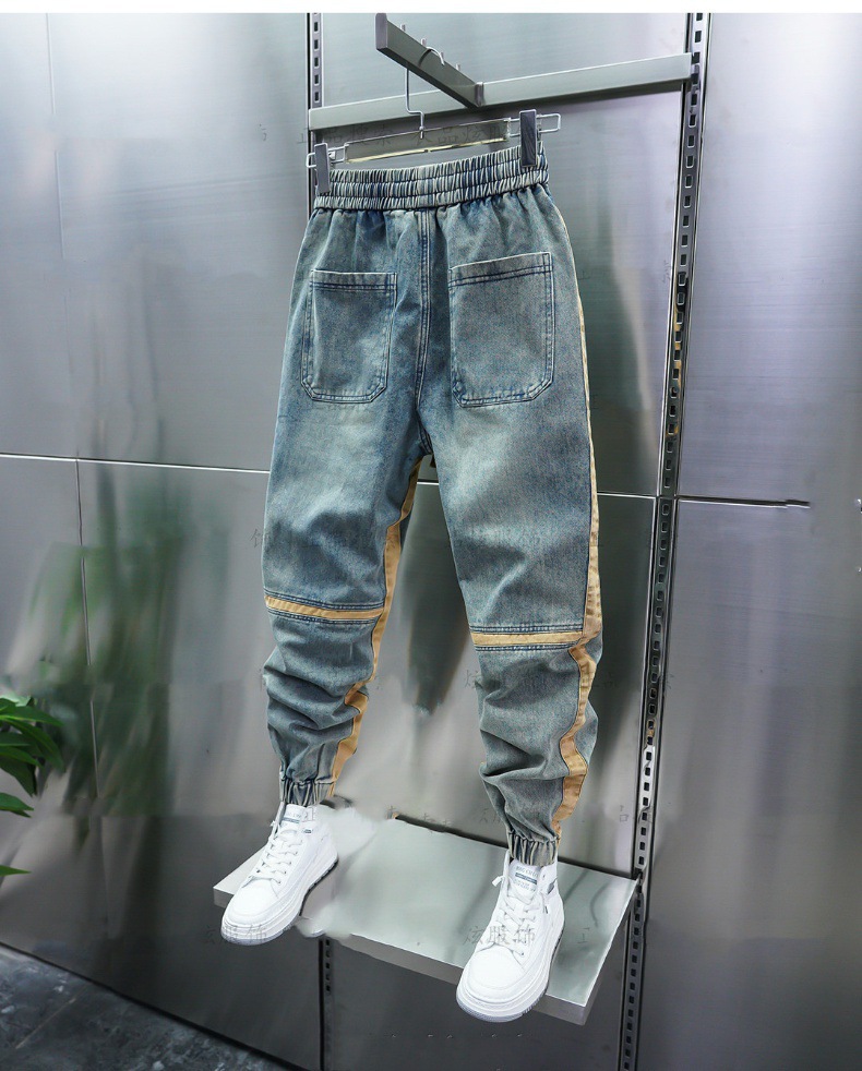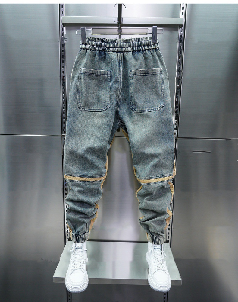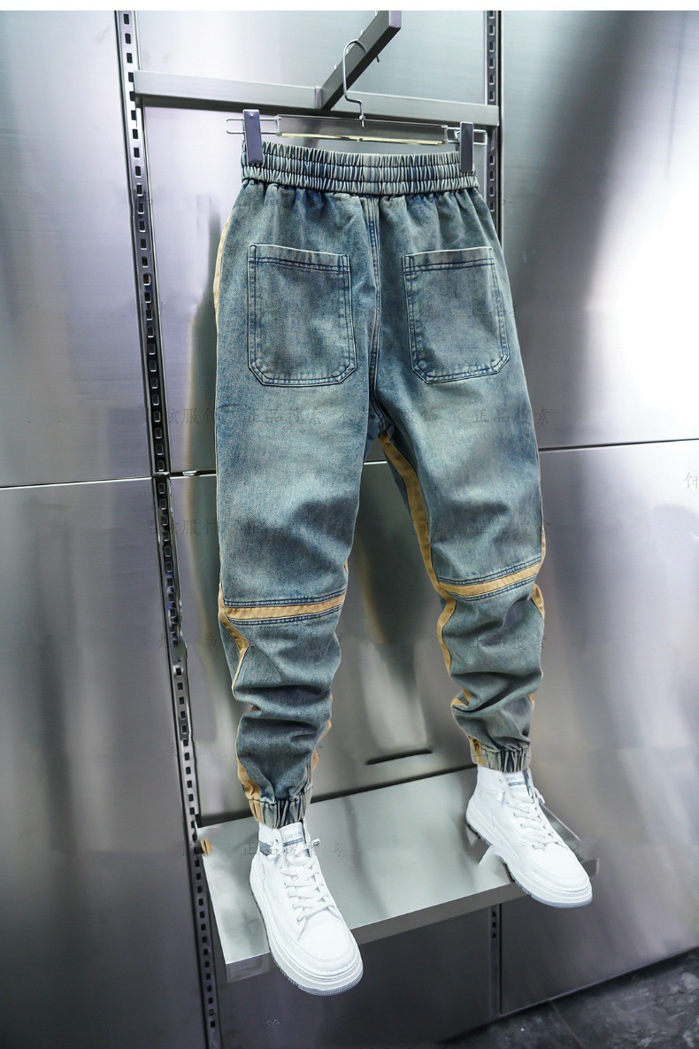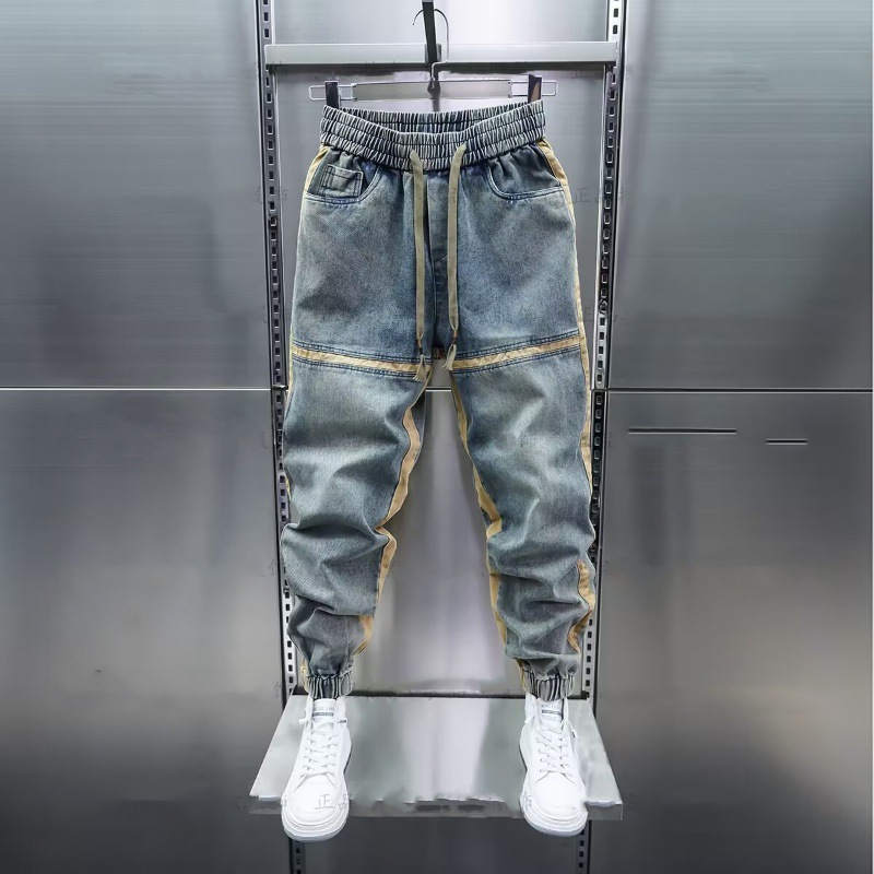 그라디언트 컬러 발목 묶인 청바지 남성용 느슨한 봄과 가을 새로운 레이스 업 스키니 팬츠 패션 브랜드 하렘 캐주얼 올 매치스토어 가기