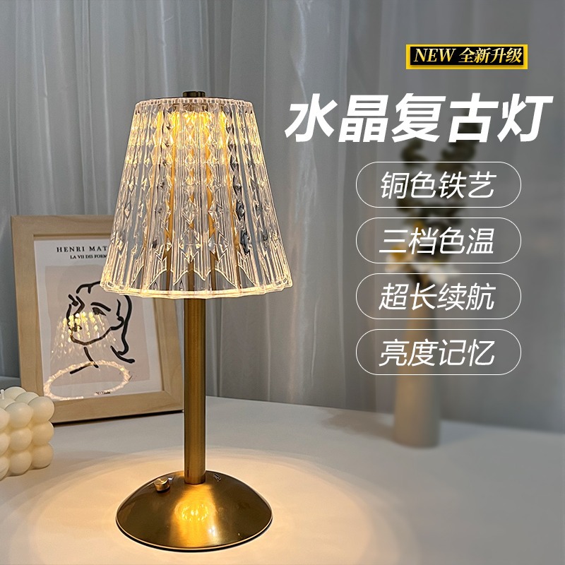 국경 간 크리스탈 레트로 아이언 침실 침실 램프 충전 밤 빛 분위기 램프 미국 빛 럭셔리 로맨틱 다이아몬드 램프