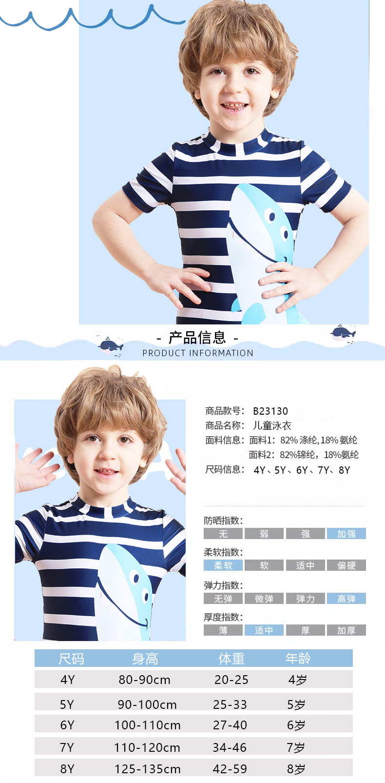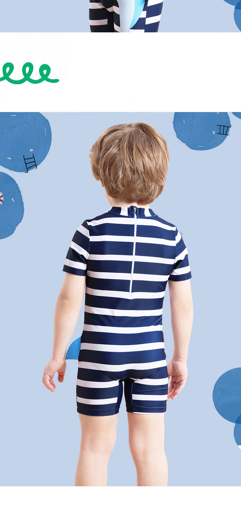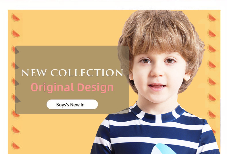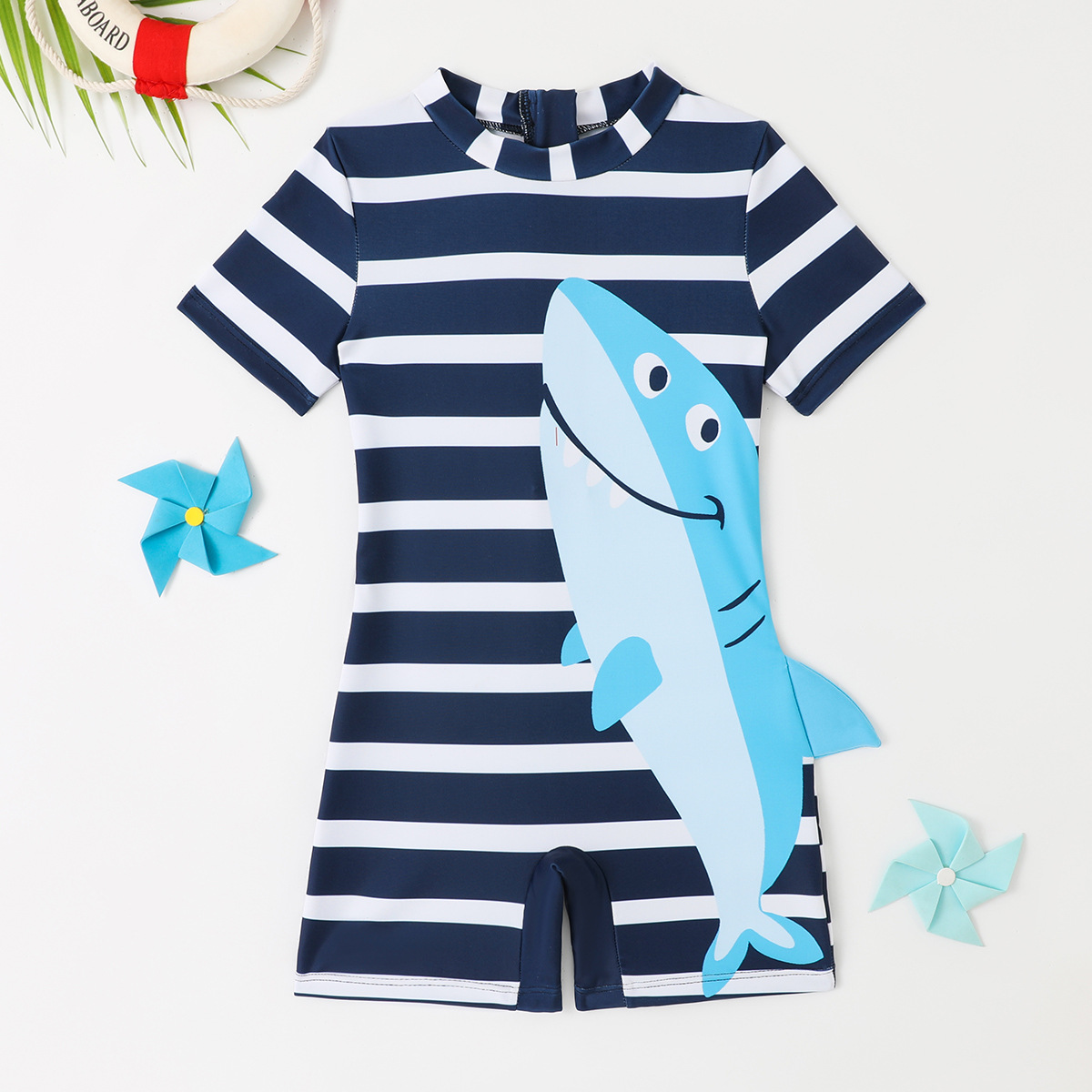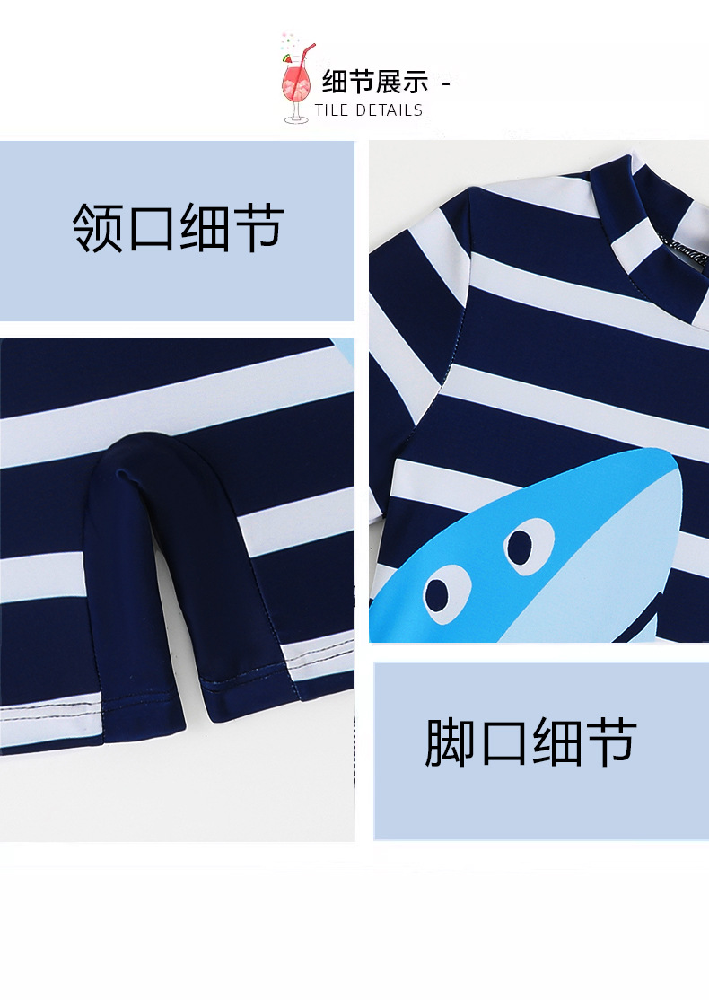 아동용 수영복 남아용 원피스 수영복 2025 스트라이프 샤크 자외선 차단 반팔 크로스보더 남아용 수영복 원피스