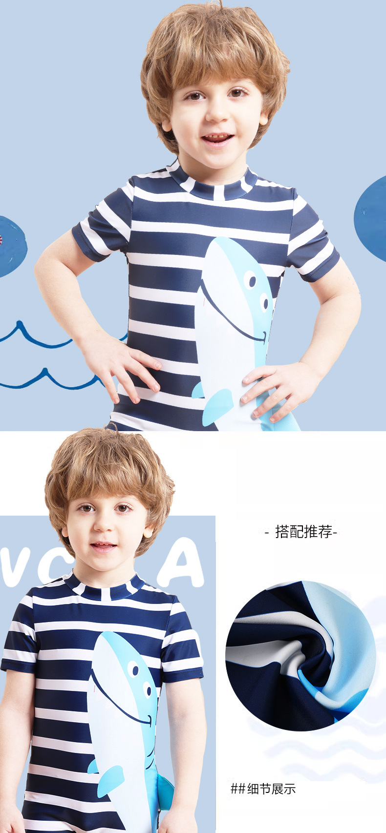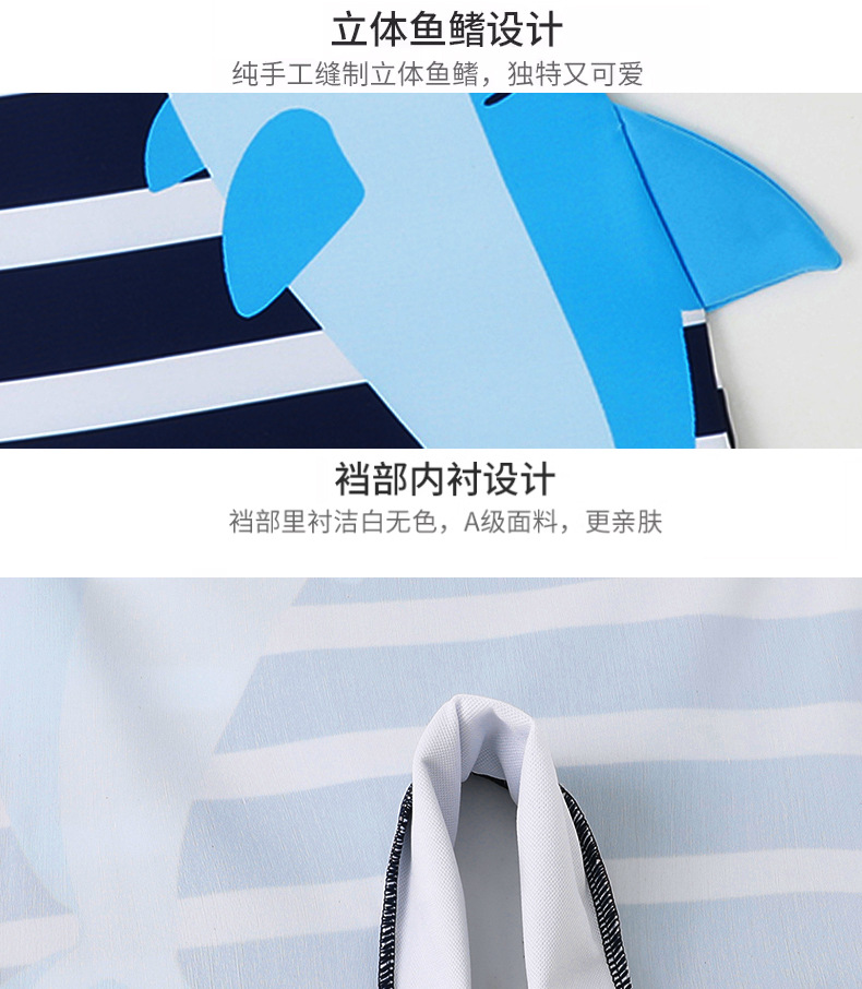아동용 수영복 남아용 원피스 수영복 2025 스트라이프 샤크 자외선 차단 반팔 크로스보더 남아용 수영복 원피스스토어 가기