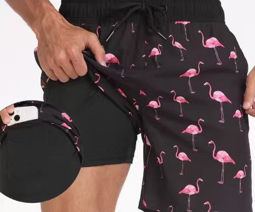 루즈핏 비치 팬츠 봄 여름 해변 서핑 팬츠 3D 프린트 패턴 트렌디한 남성 반바지 다용도 캐주얼 비치웨어