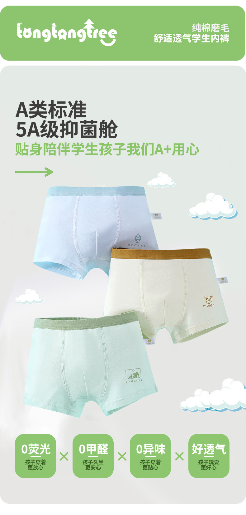 어린이 나무 5A 항균 순수면 어린이 속옷 6 박스 클래스 PP 권투 선수가없는 칫솔질 소년 소녀스토어 가기