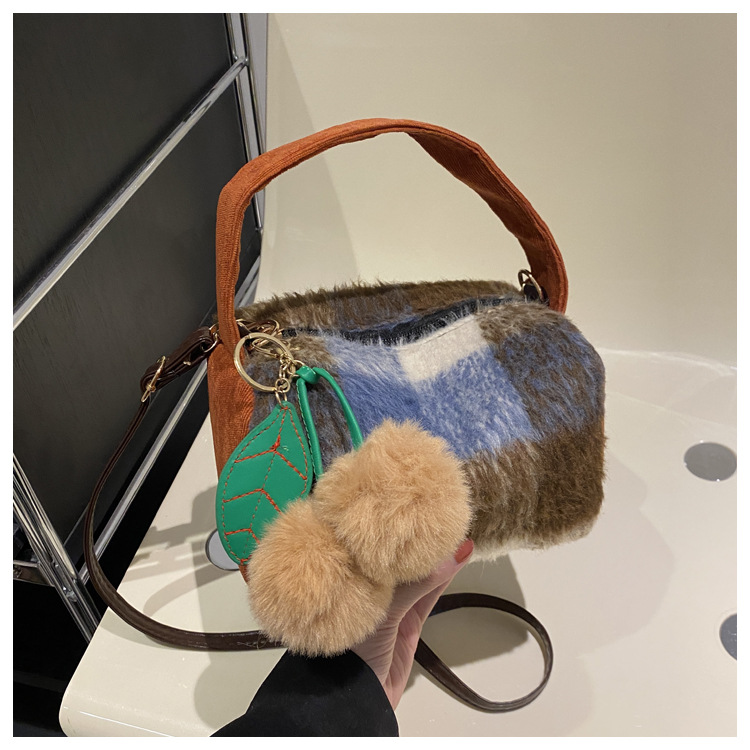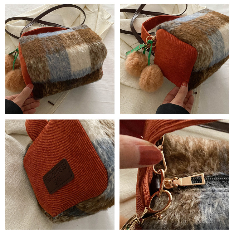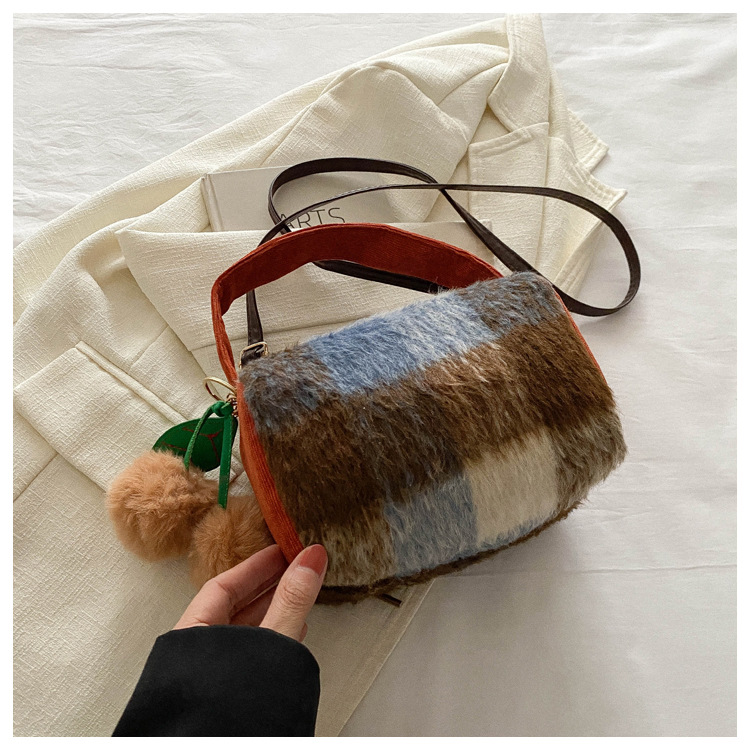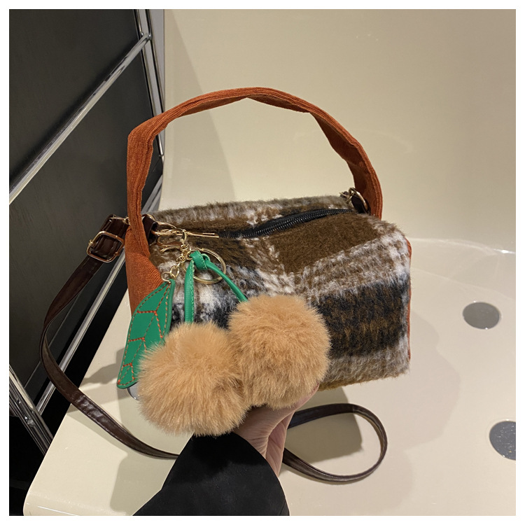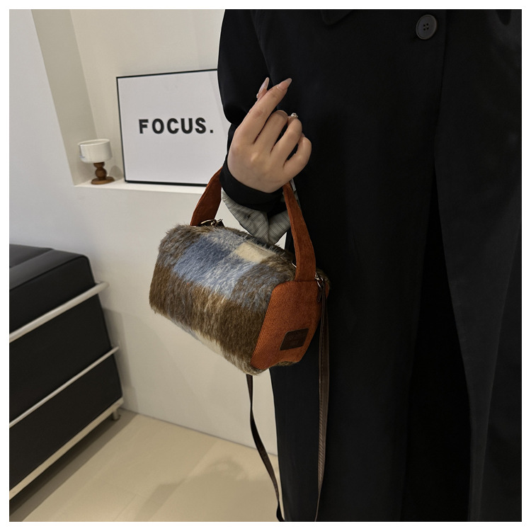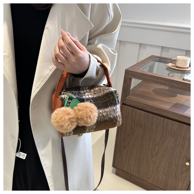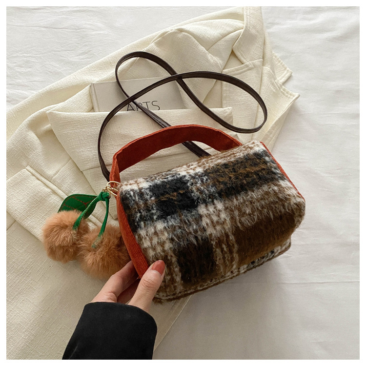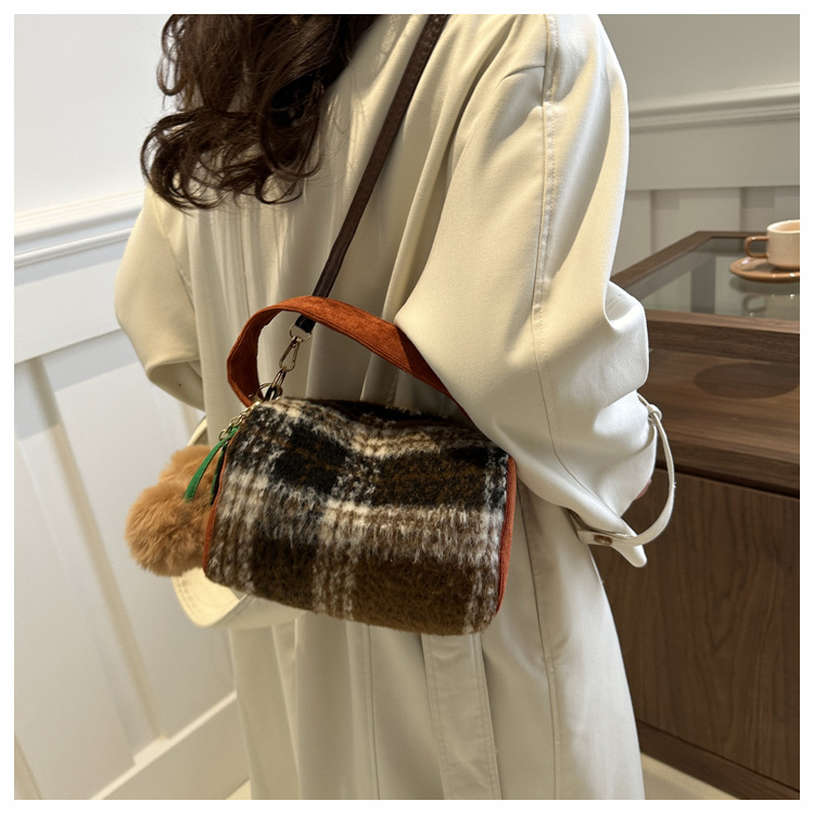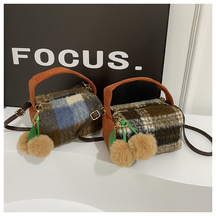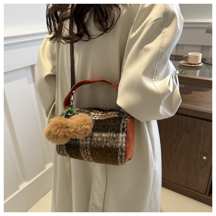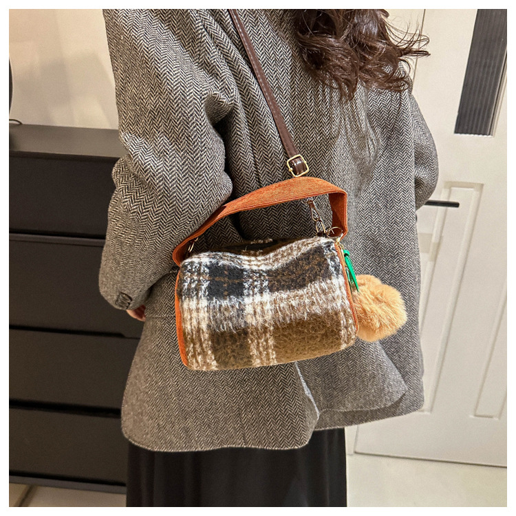 모직 격자 무늬 핸드백 여성 가방 새로운 맞춤형 여성 베개 가방 숄더백 유행 대용량 메신저 가방스토어 가기