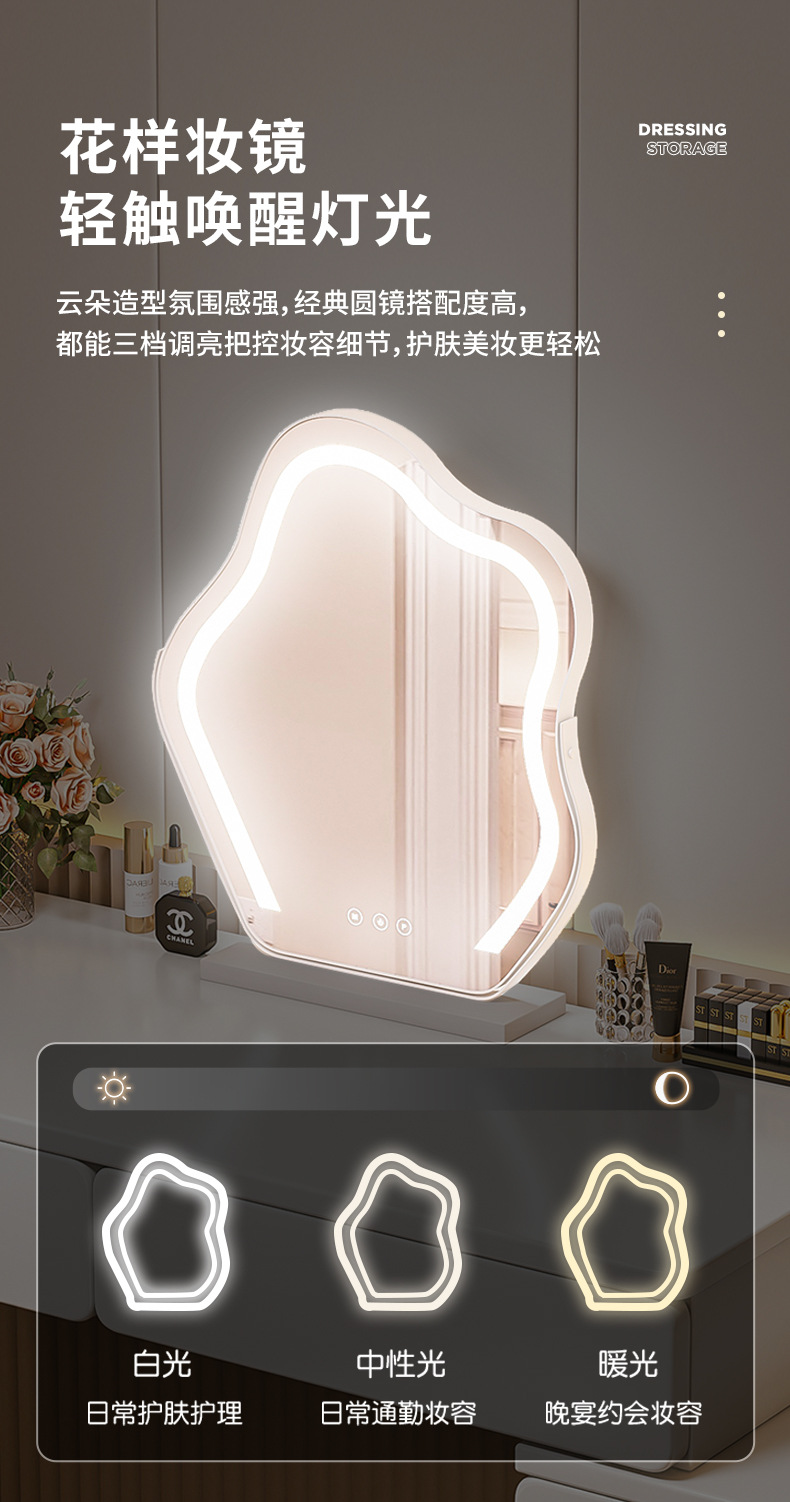 • [서랍 5개, 수납장 1개 + 스마트 클라우드 미러 + 꽃잎 의자] 80cm