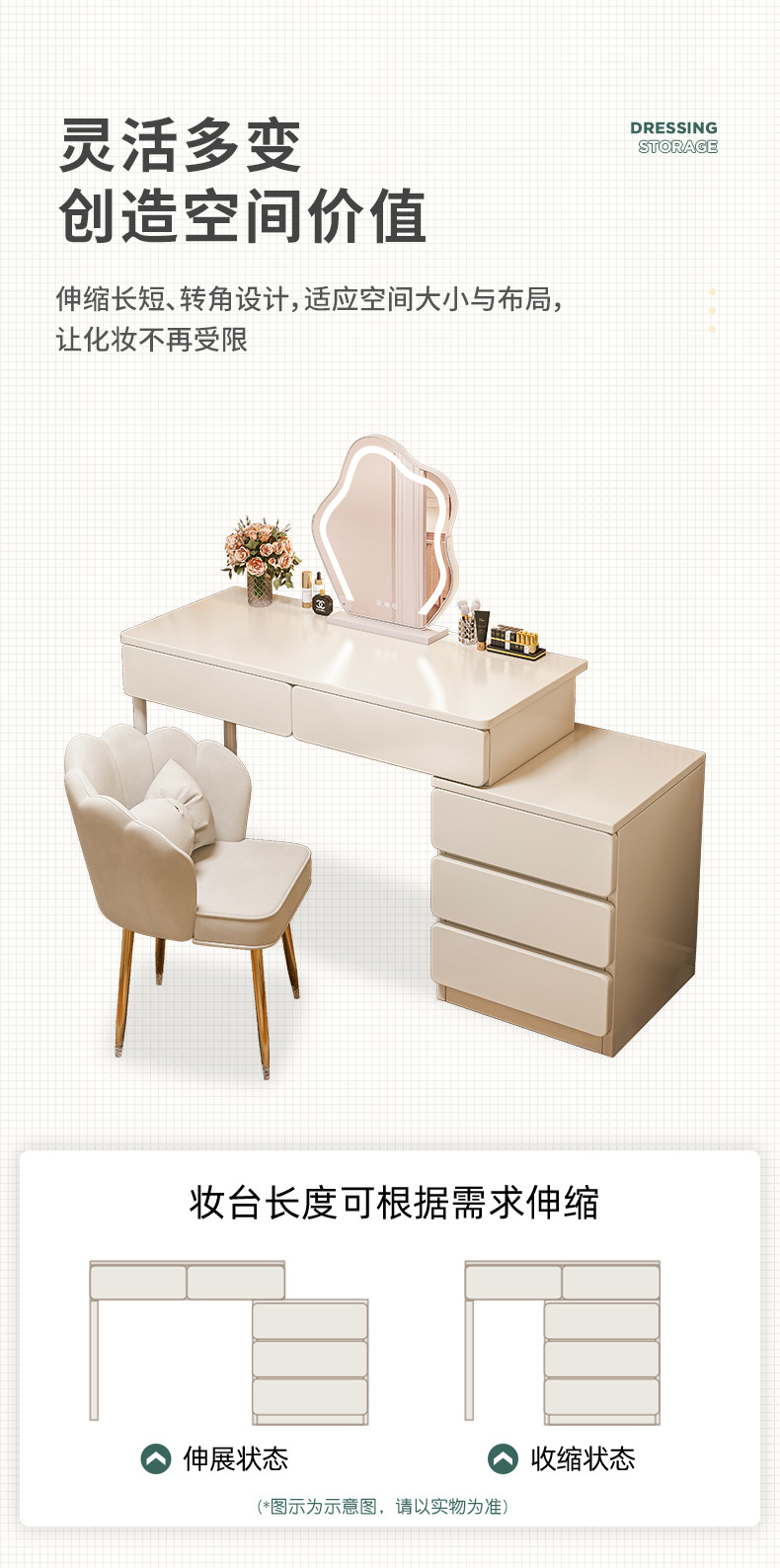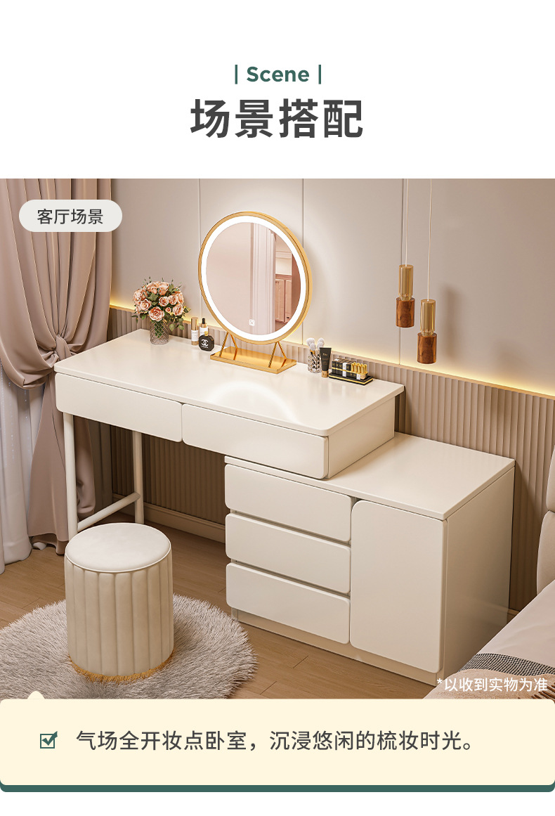 화장대 침실 심플 모던 침대 옆장 화장대 수납장 일체형 크림 스타일 2025 신형 화장대스토어 가기