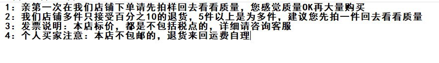 1;本店主营中低档商品,对产品质量要求过高的请慎重下单,毕竟一分钱一分货便宜的价格不可能有高品质的货,退货来回运费自理的我们不包邮,喜欢差评和投诉者请绕道,谢谢!