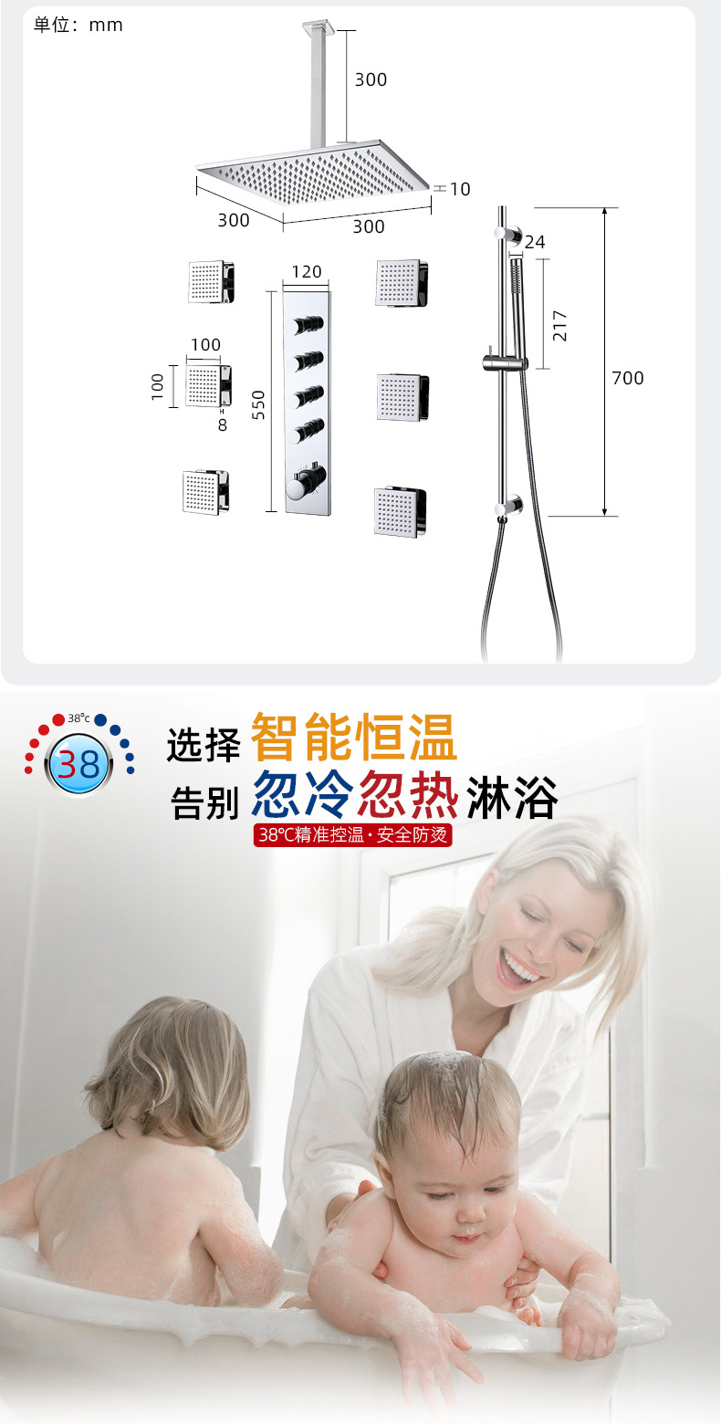 은폐 된 샤워 SUS304 세트 구리 가정용 일정한 온도 욕실 샤워 호텔 숨겨진 파이프 벽 샤워