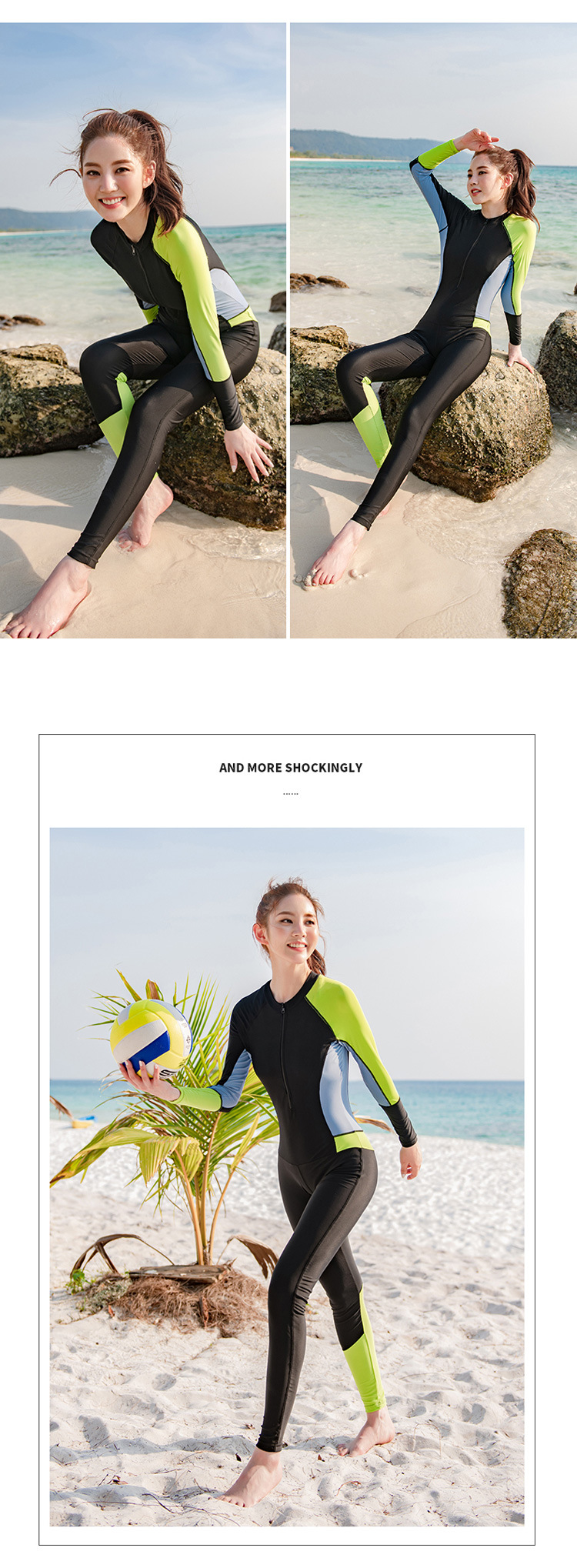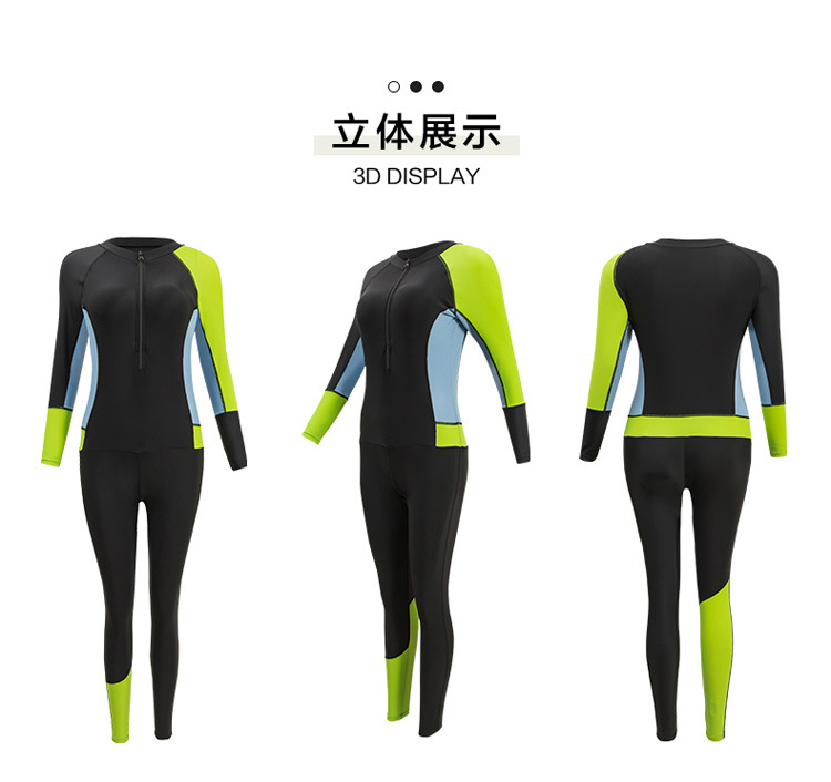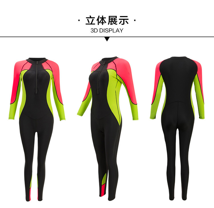 원피스 수영복 여성용 긴팔 바지 태양 보호 방수 여성 스노클링 서핑 다이빙 세트 대비 컬러 슬리밍 스트레치 수영복