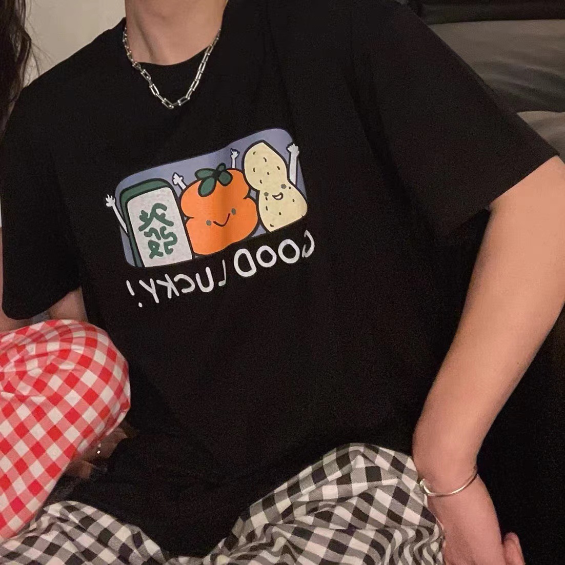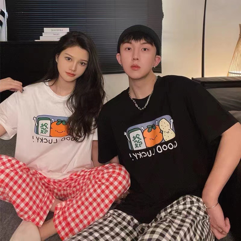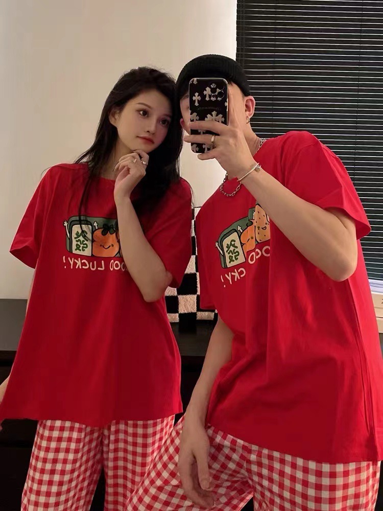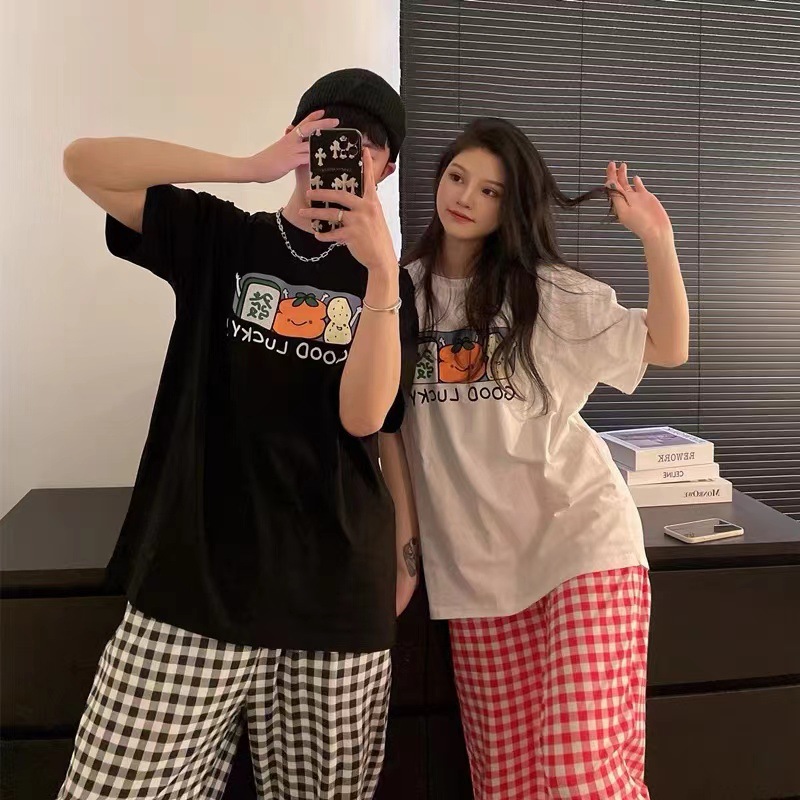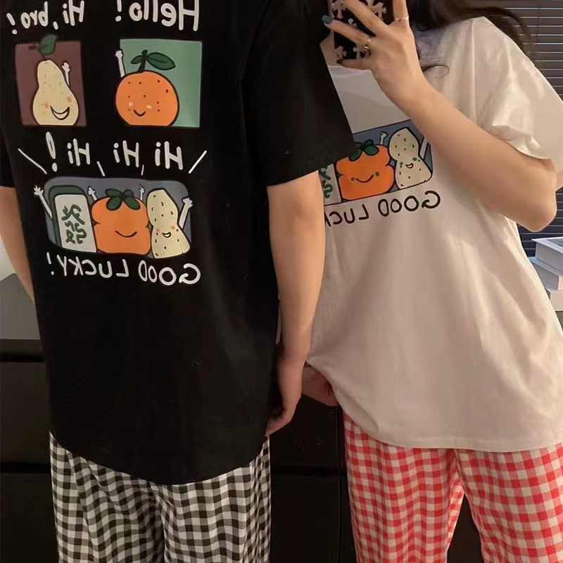 커플의 좋은 일이 일어납니다. 중공업 염색 공예 반팔 바지 가정복 잠옷 세트스토어 가기