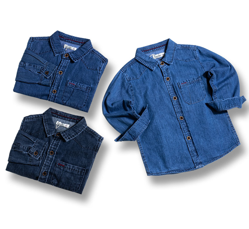 대외 무역 아동복 데님 셔츠 재고 도매 경험 블루 데님 셔츠 봄과 가을 소년 데님 셔츠스토어 가기