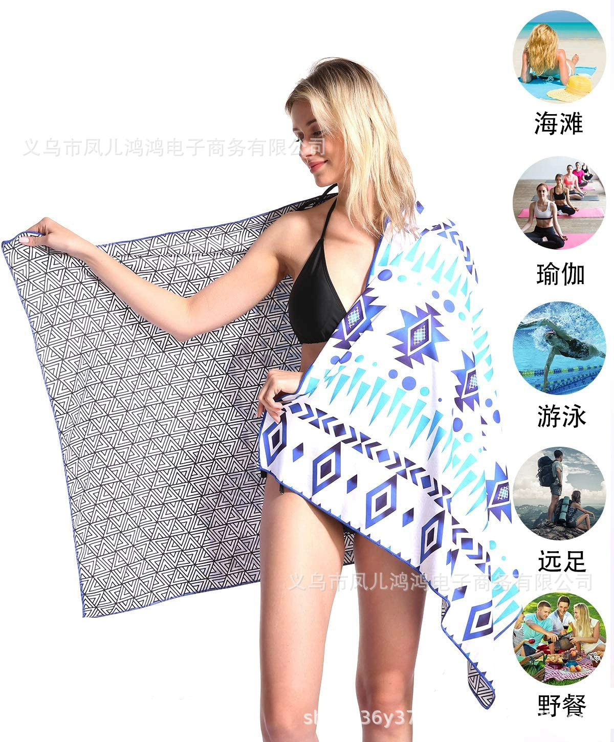 국경 간 뜨거운 판매 슈퍼 흡수성 빠른 건조 다목적 경량 모래없는 줄무늬 시리즈 인쇄 양면 양털 비치 타월 비치스토어 가기