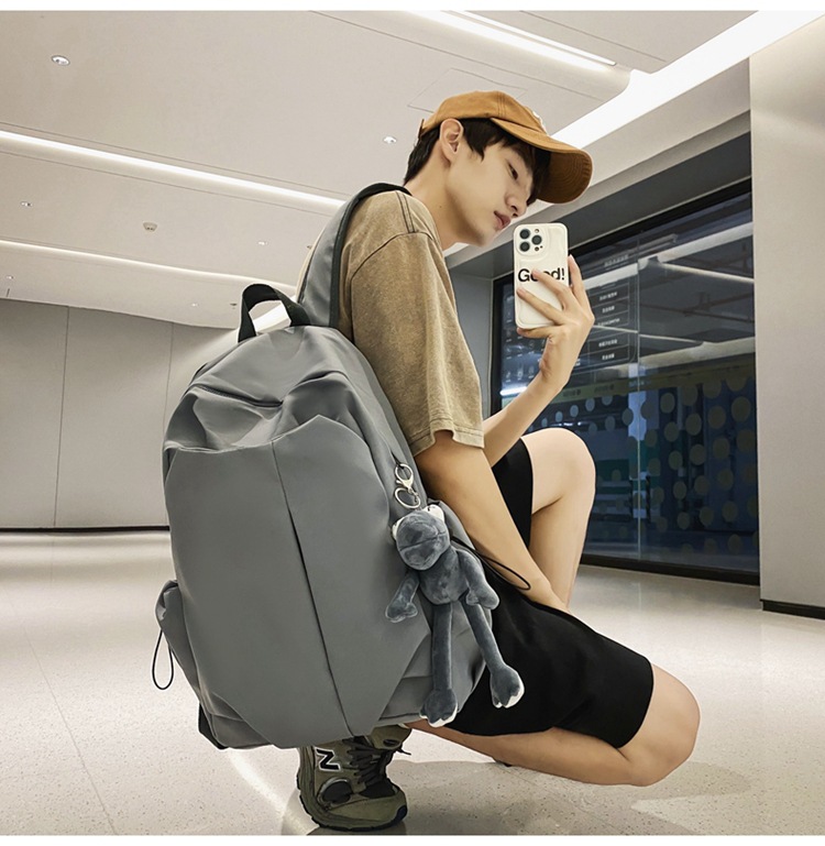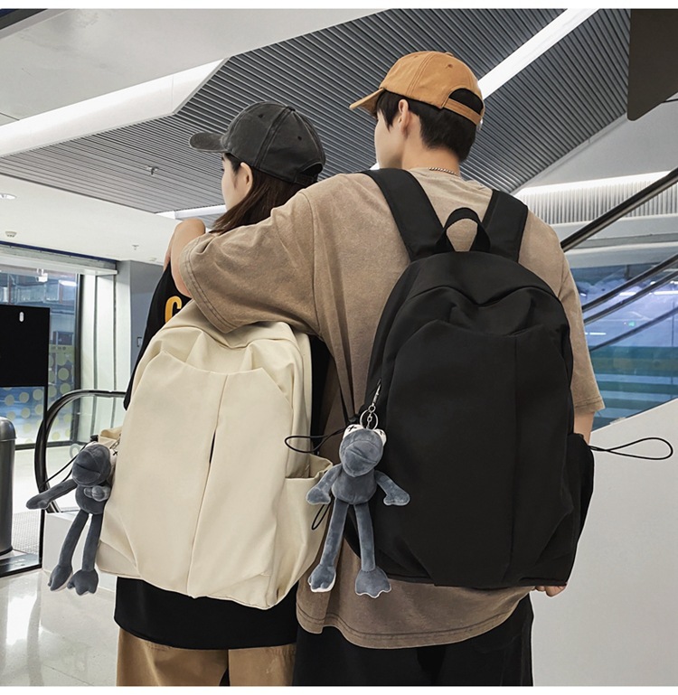2024 봄 새로운 나일론 주름 단색 책가방 패션 거리 트렌드 남성과 여성 커플 배낭스토어 가기