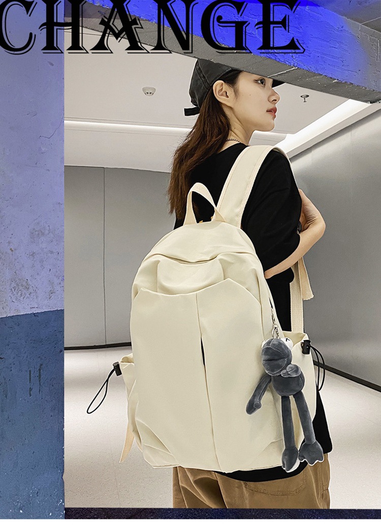 2024 봄 새로운 나일론 주름 단색 책가방 패션 거리 트렌드 남성과 여성 커플 배낭
