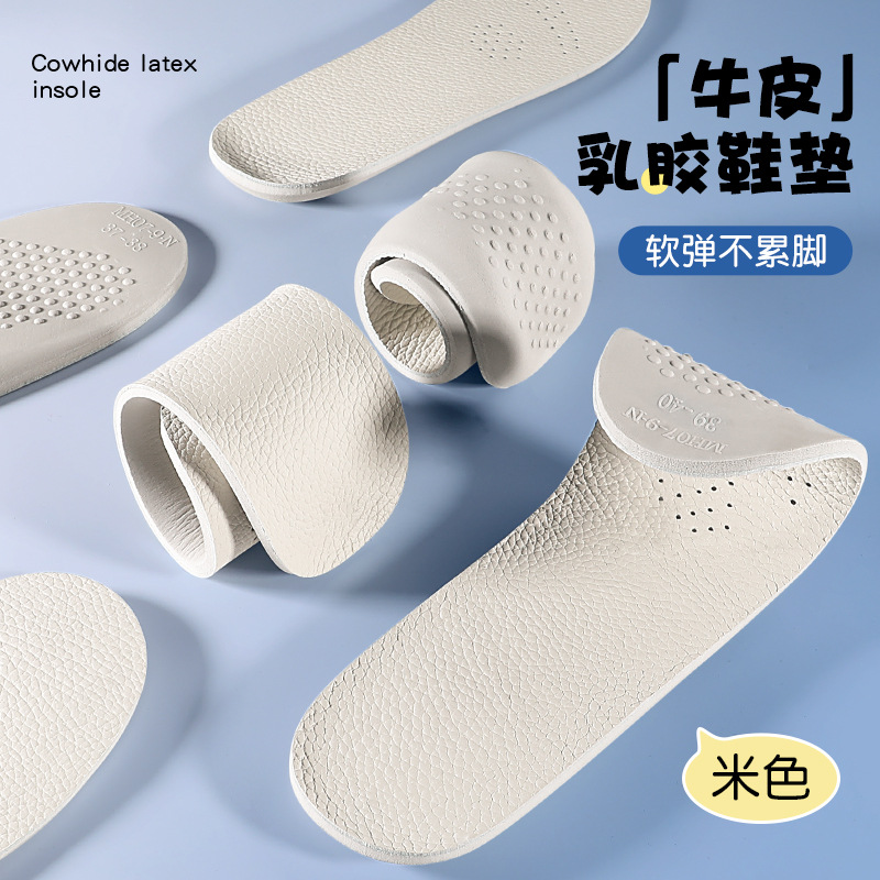 정품 소 가죽 라텍스 깔창 슈퍼 부드러운 오래 서있는 통증 방지 남성 땀 흡수성 탈취제 스포츠 충격 흡수 똥 느낌 가을과 겨울 깔창 여성