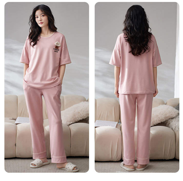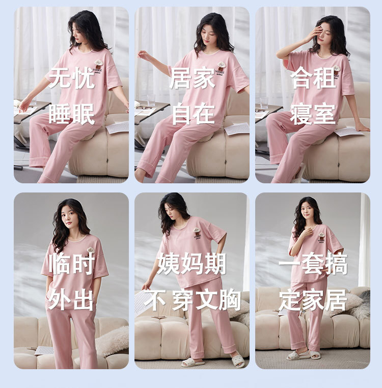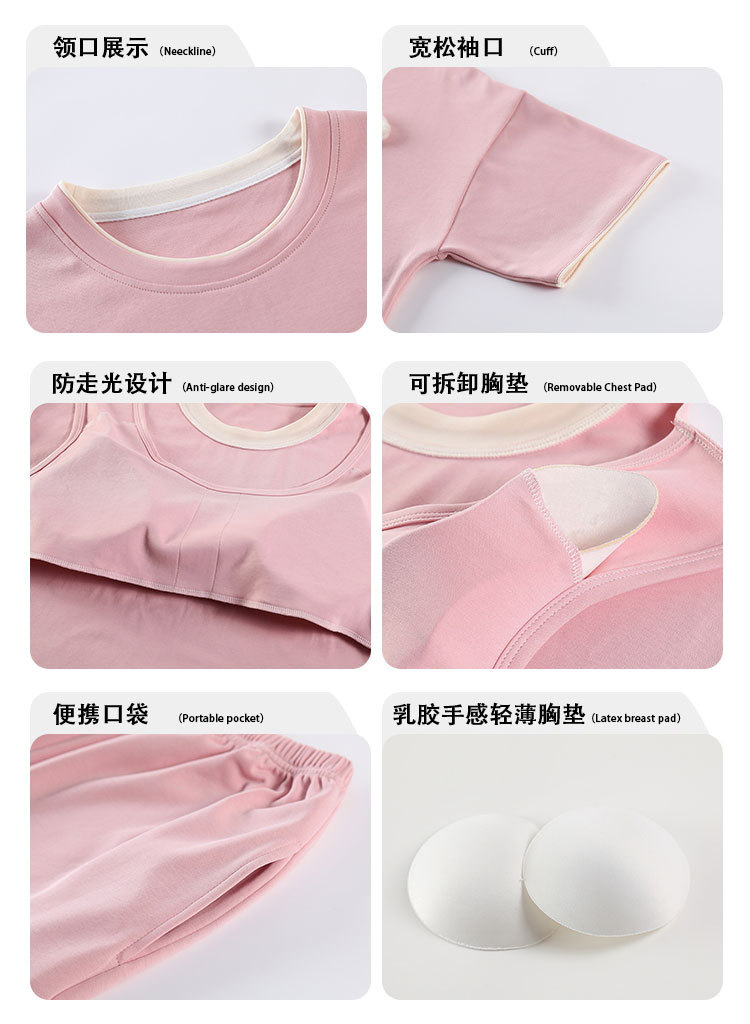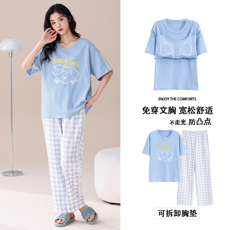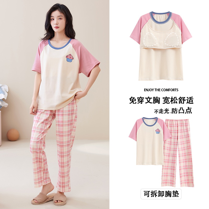 [7A 항균] 가슴 패드가있는 잠옷 여성 면 짧은 소매 바지는 여름 여성 홈 의류 세트 밖에서 입을 수 있습니다.스토어 가기