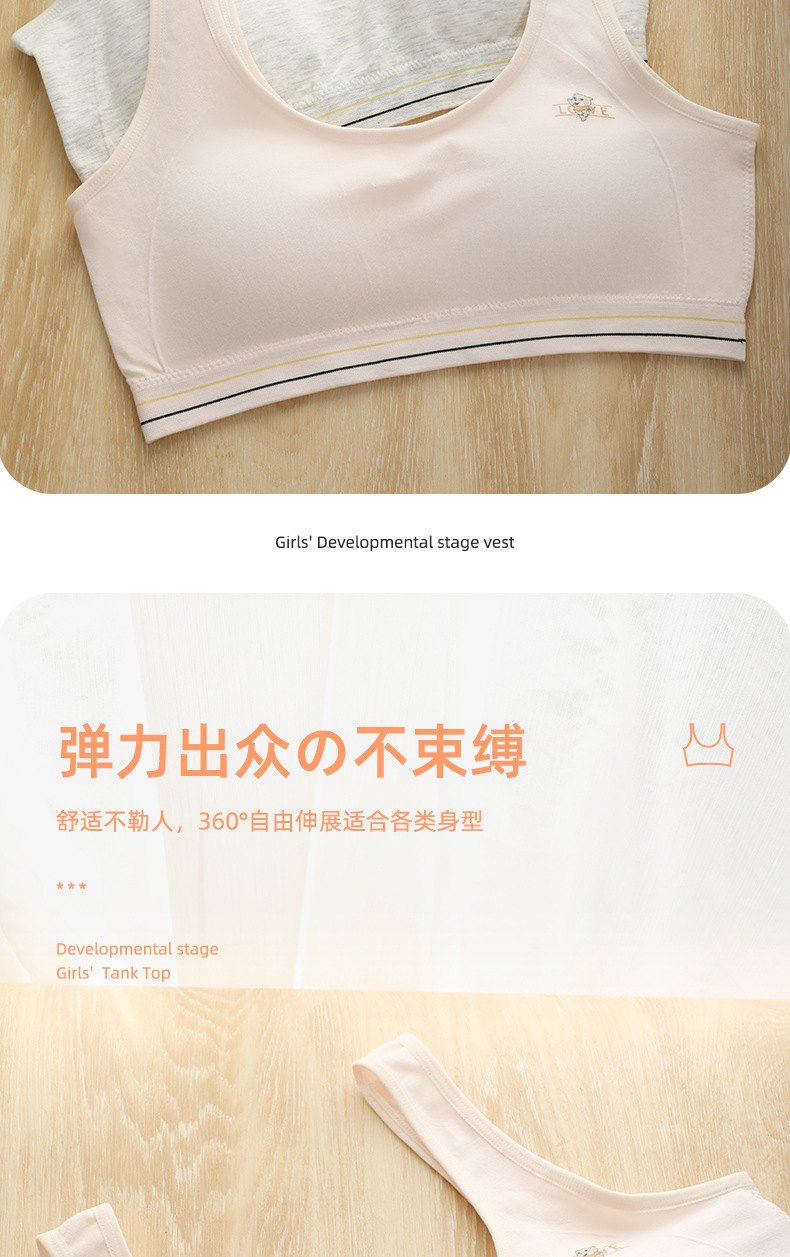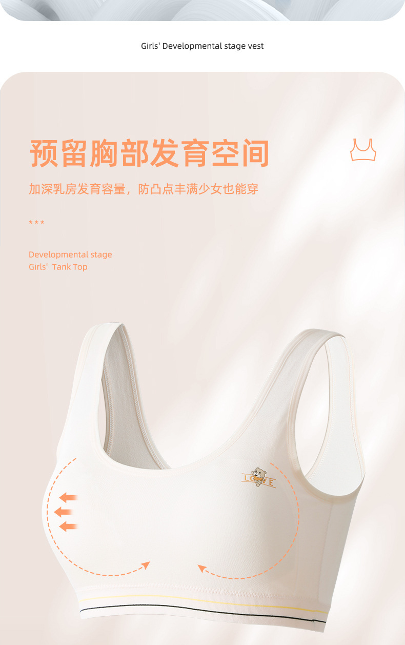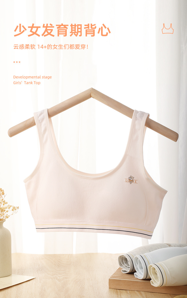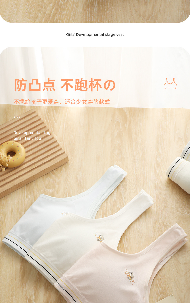 소녀의 원활한 개발 조끼 스포츠 레저 무선 노출 방지 부드럽고 편안한 고정 컵 학생 속옷