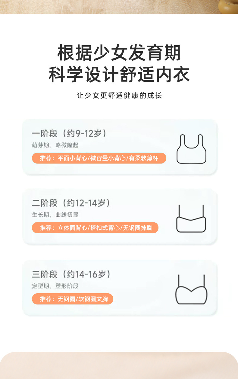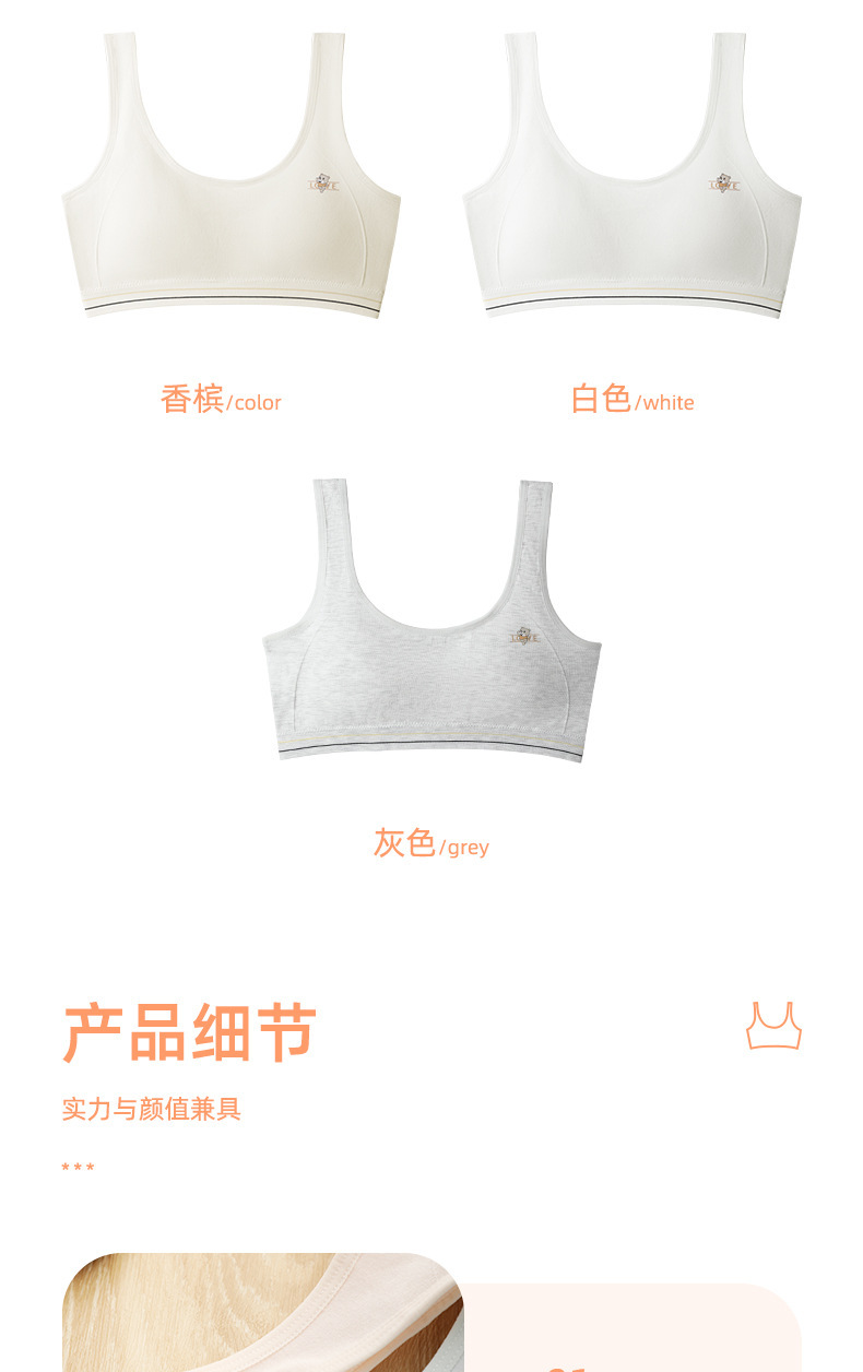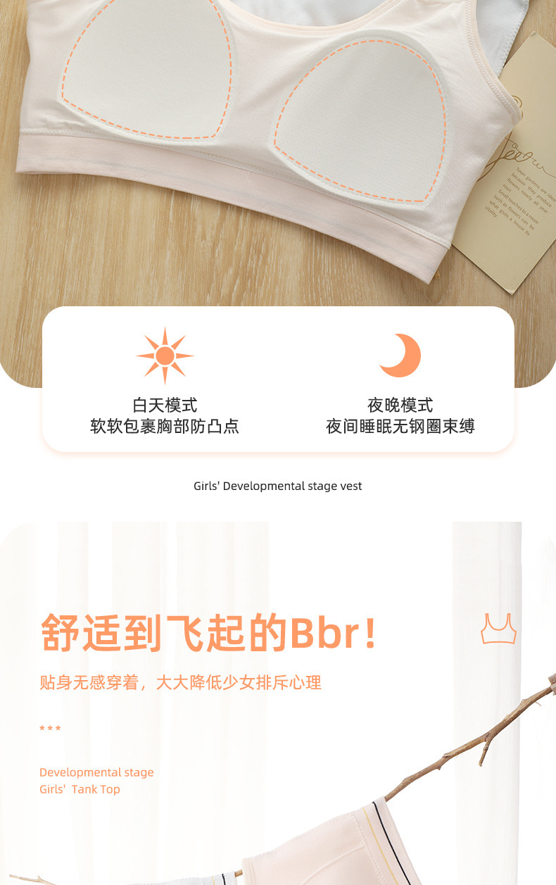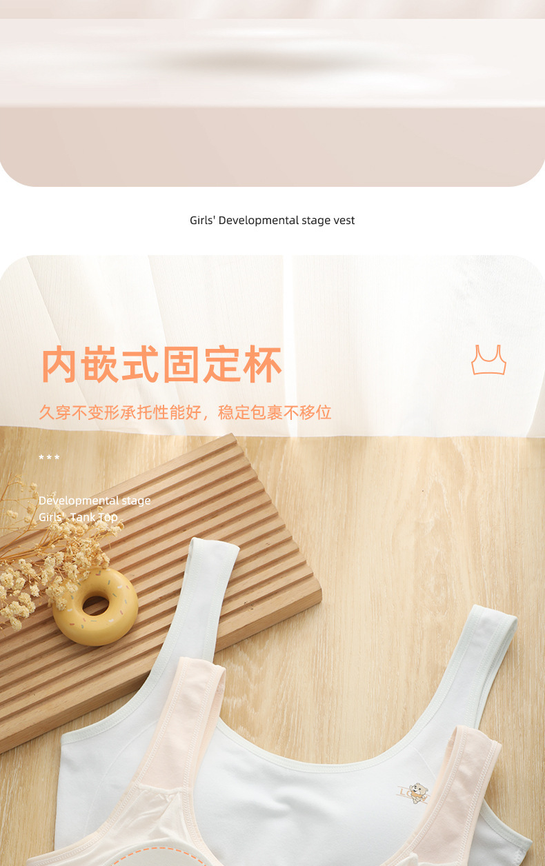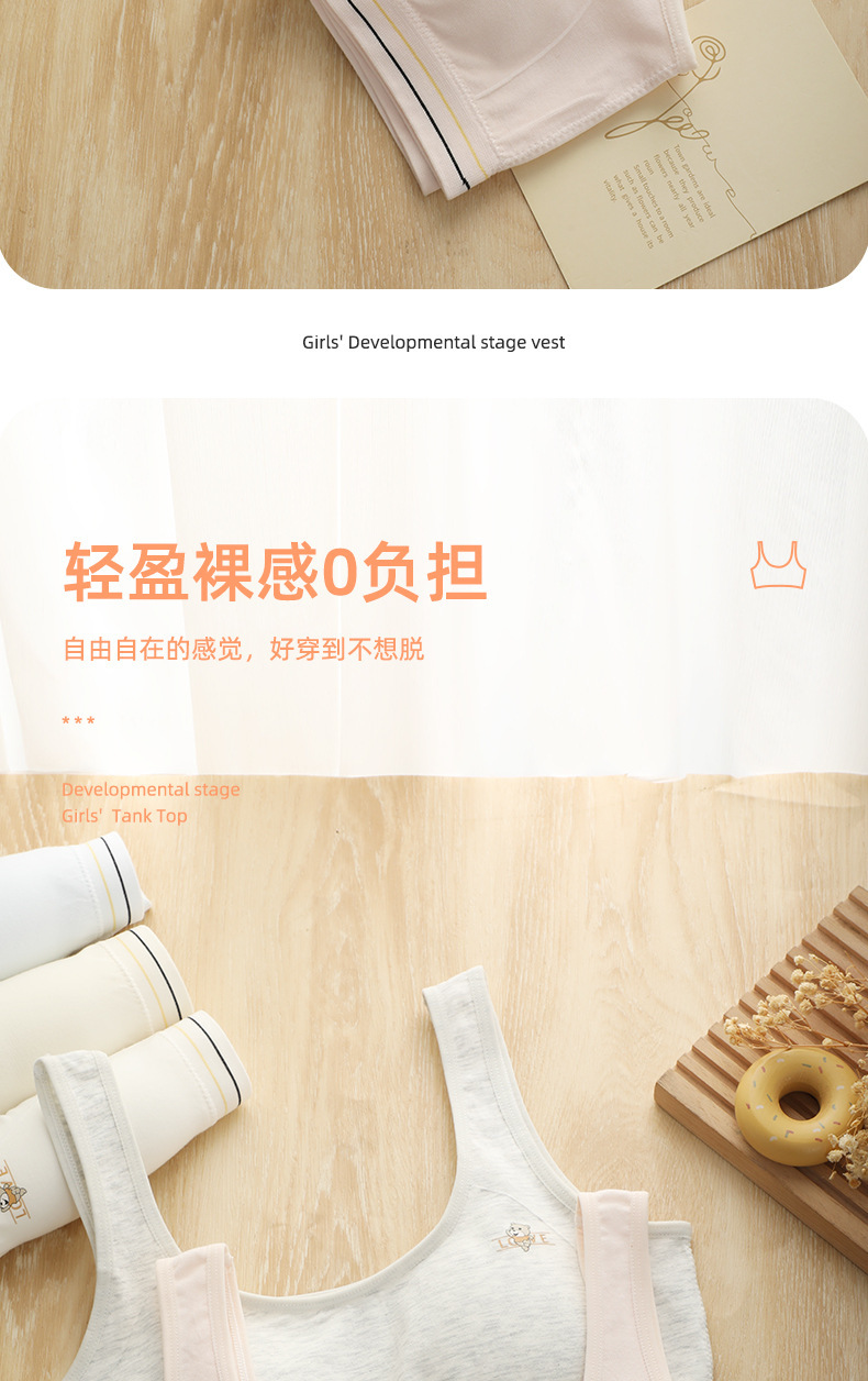 소녀의 원활한 개발 조끼 스포츠 레저 무선 노출 방지 부드럽고 편안한 고정 컵 학생 속옷