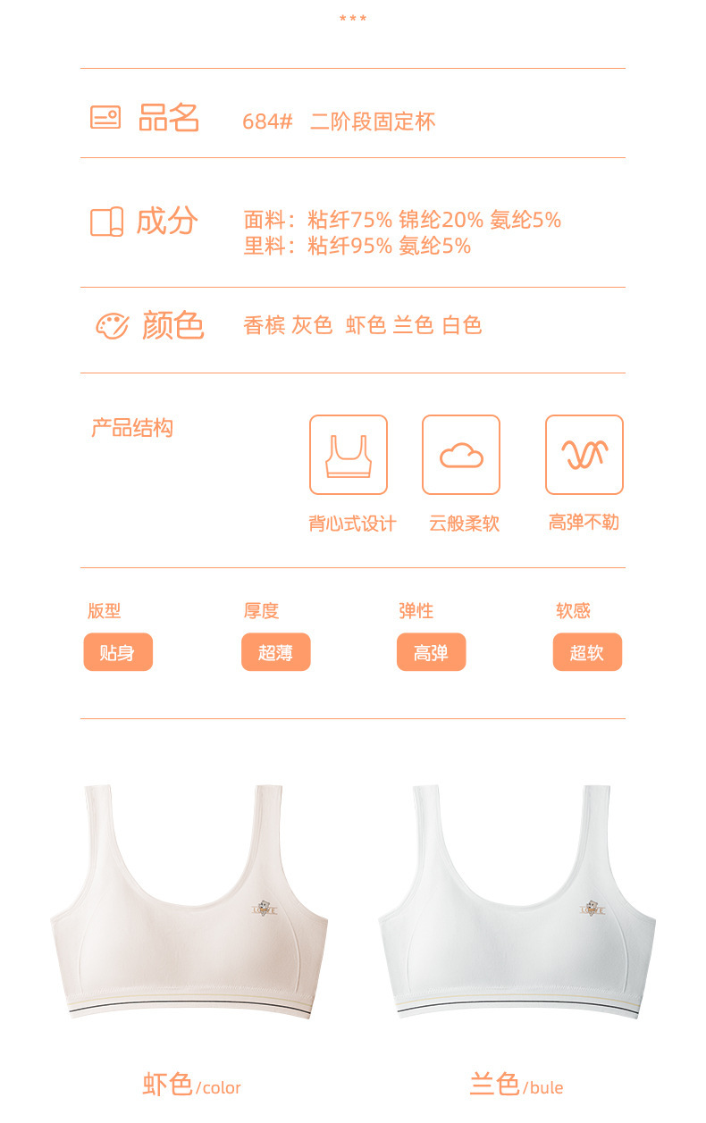 소녀의 원활한 개발 조끼 스포츠 레저 무선 노출 방지 부드럽고 편안한 고정 컵 학생 속옷스토어 가기