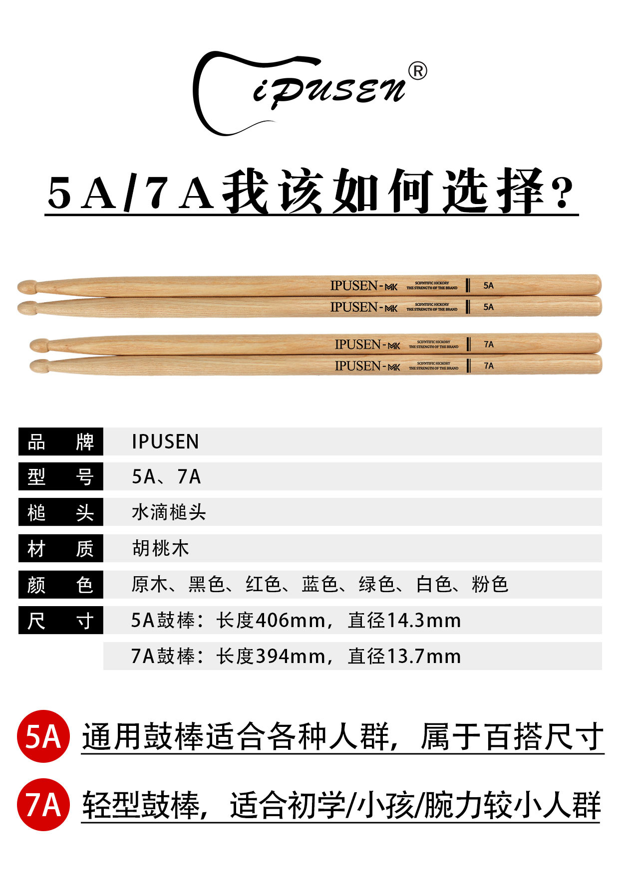 MK 드럼 세트 드럼 스틱 5A 재즈 드럼 스틱 전문 어린이 연습 호두 드럼 해머 7A 레터링스토어 가기